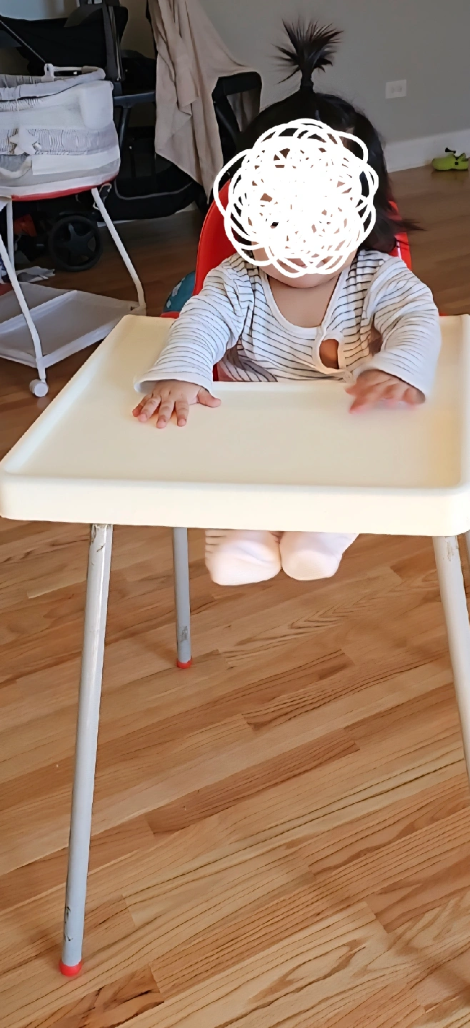 Selling a used baby high chair. It's got a simple design and could be perfect for your little one during meal times. There are some signs of use on the legs, as shown in the pictures