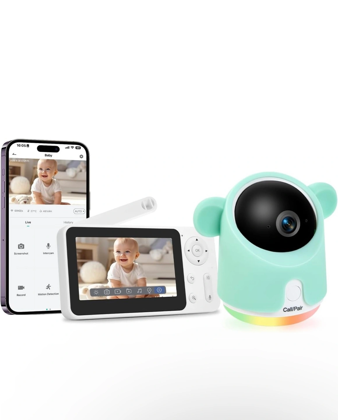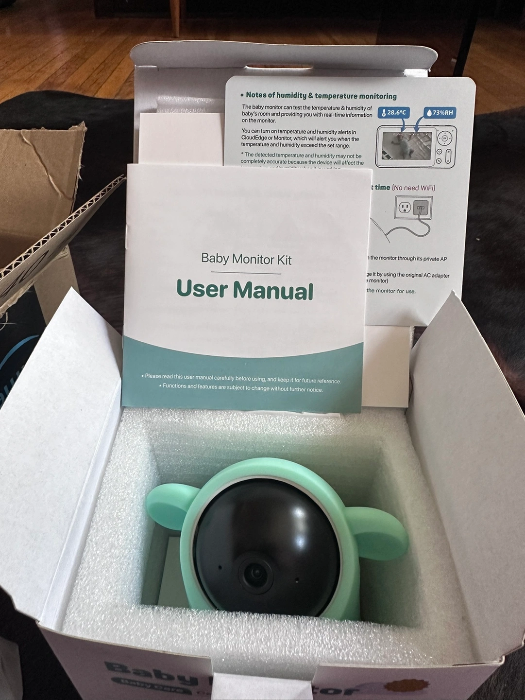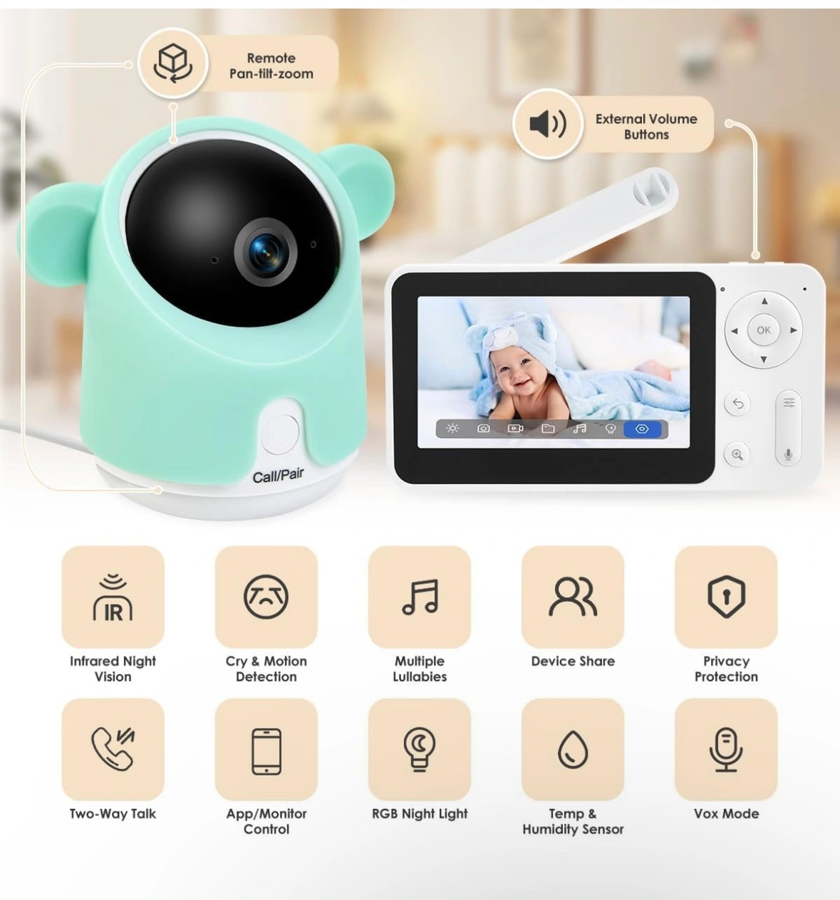 9The monitor comes with a screen to view your child. It also features a camera that allows you to see your child and an audio feature that allows you to talk to your child. The monitor also includes a temperature and humidity sensor.