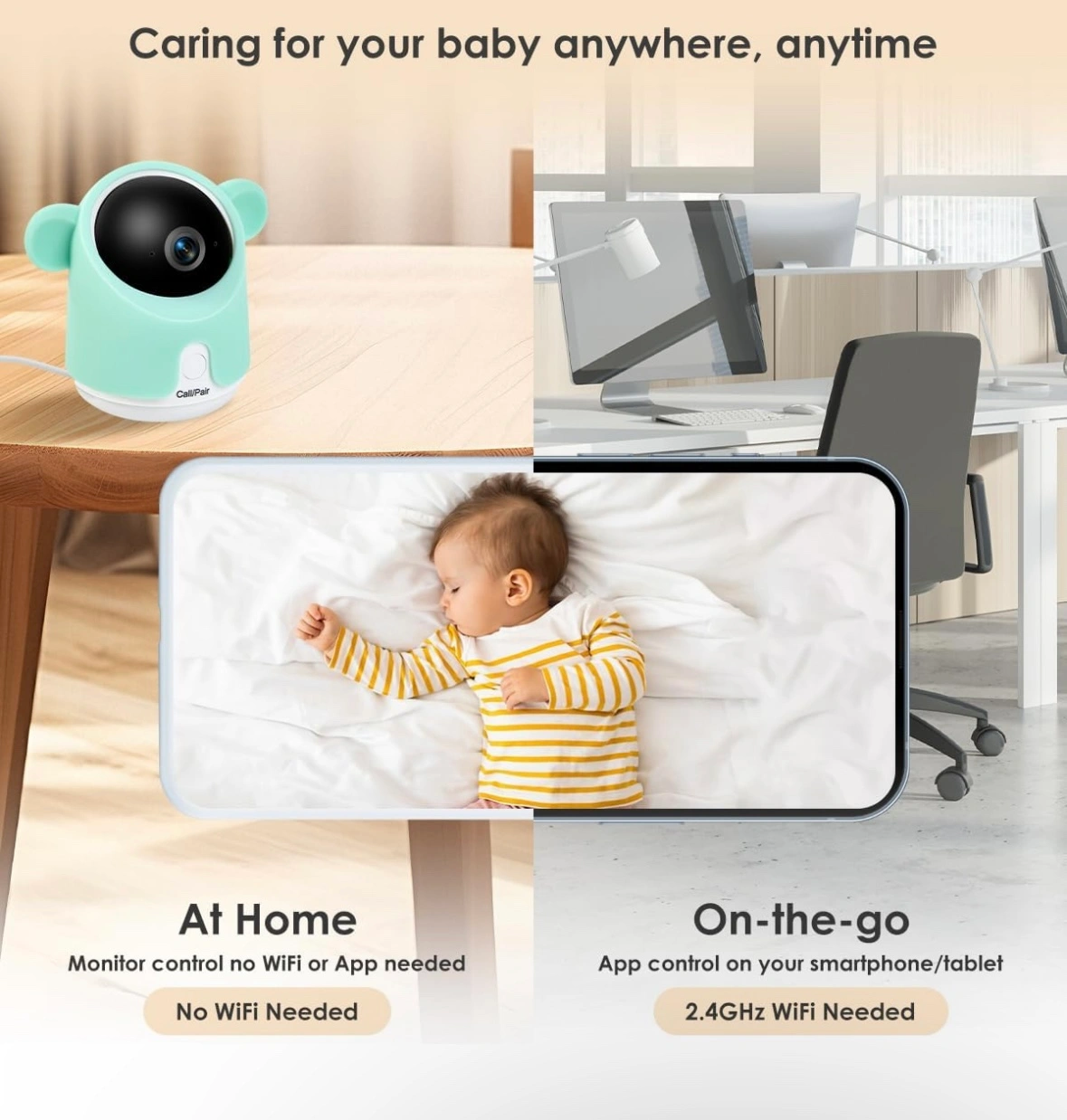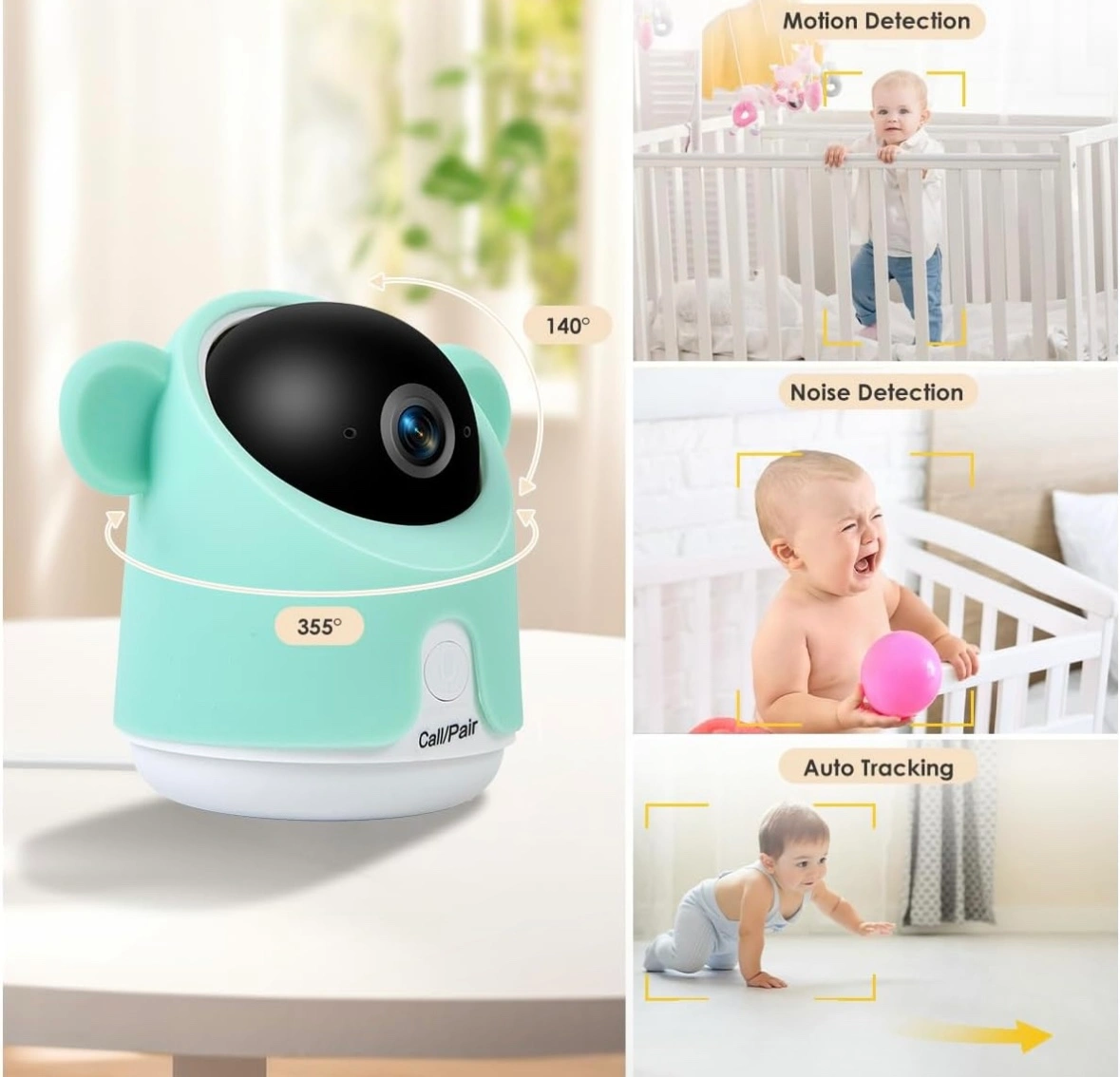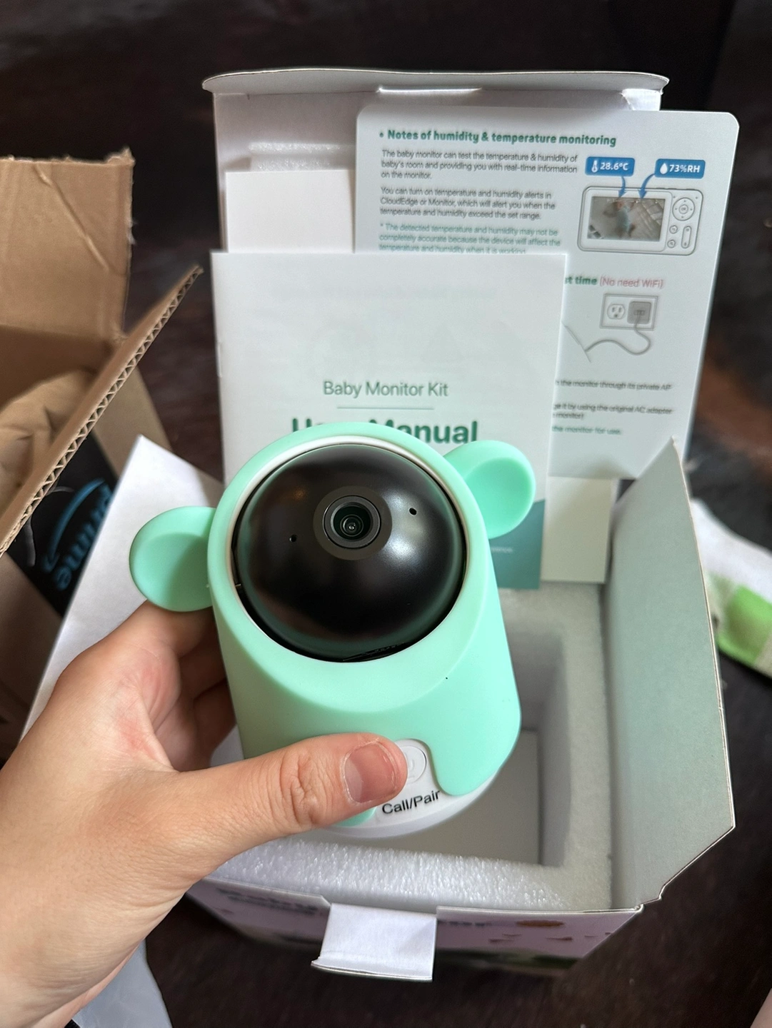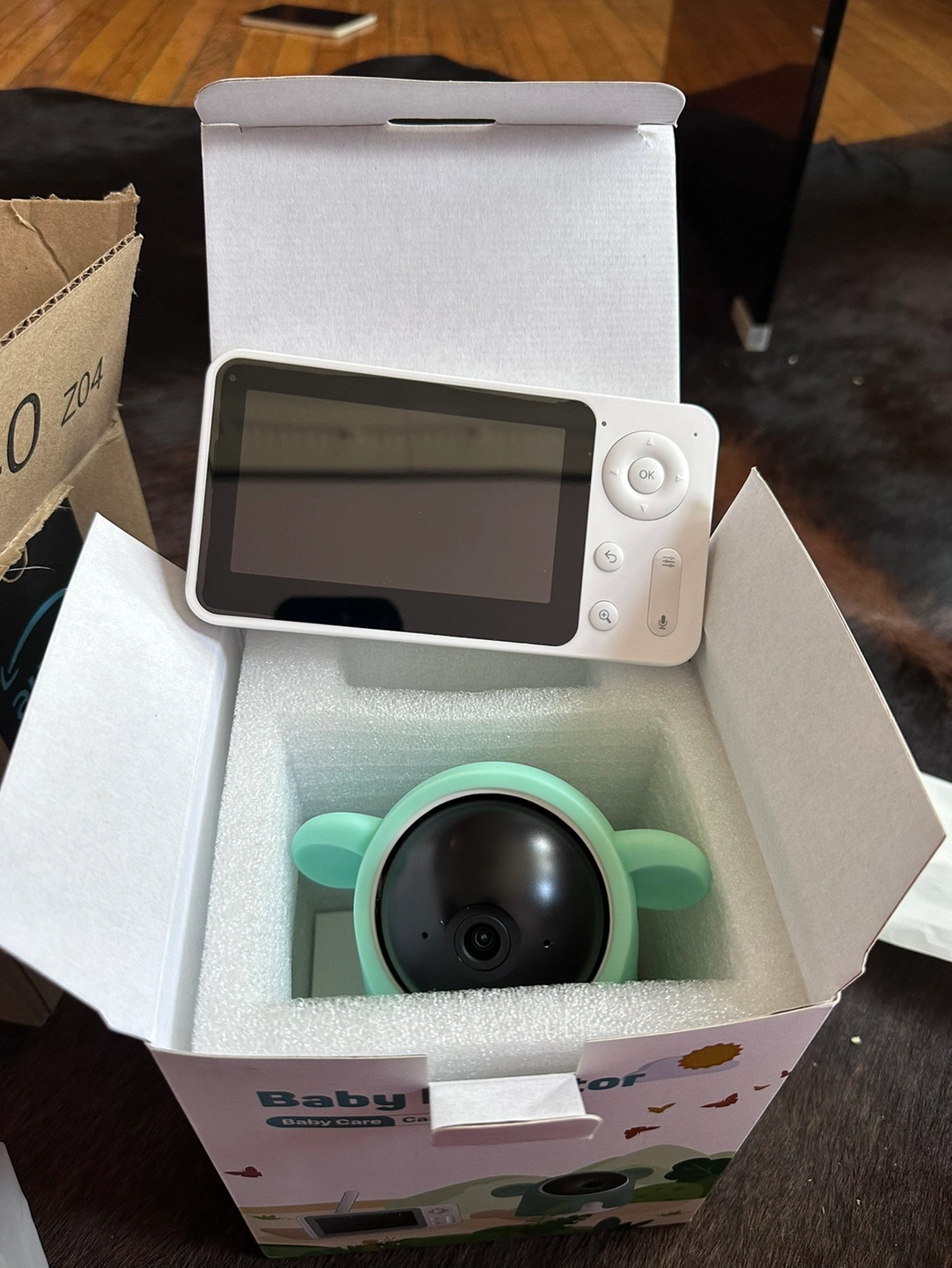 9The monitor comes with a screen to view your child. It also features a camera that allows you to see your child and an audio feature that allows you to talk to your child. The monitor also includes a temperature and humidity sensor.