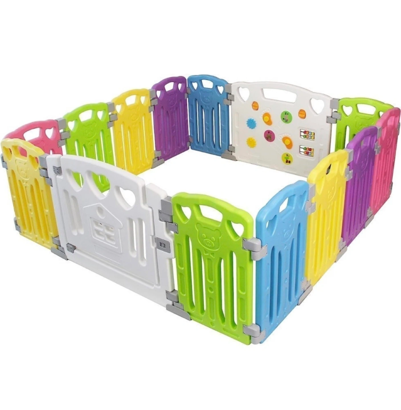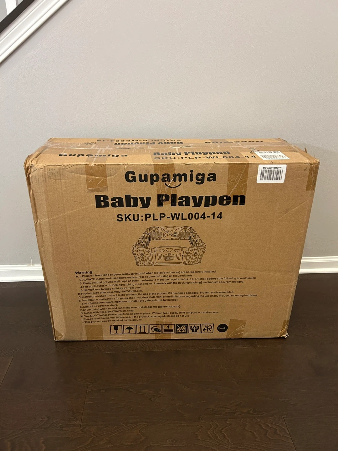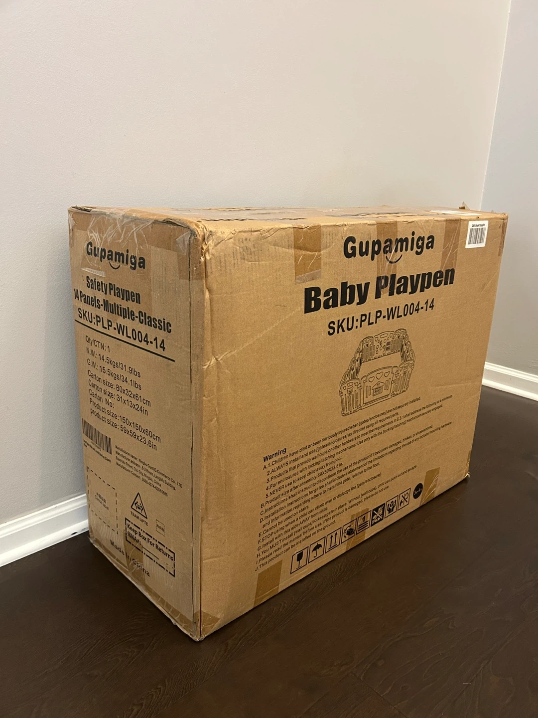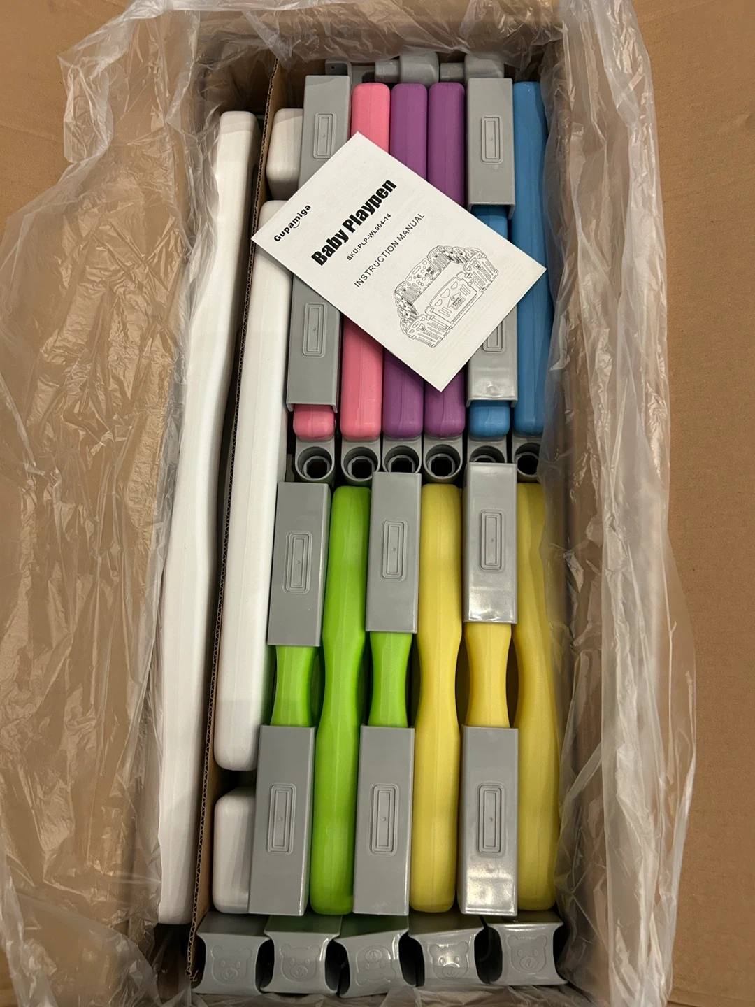 I'm selling a baby playpen. It's a colorful play area made of 14 panels that cover 26 square feet. It measures 59" x 59" and includes 12 panels and 2 gates. Brand New. The original box and instruction manual are included! Pick up in Romeoville IL 60446