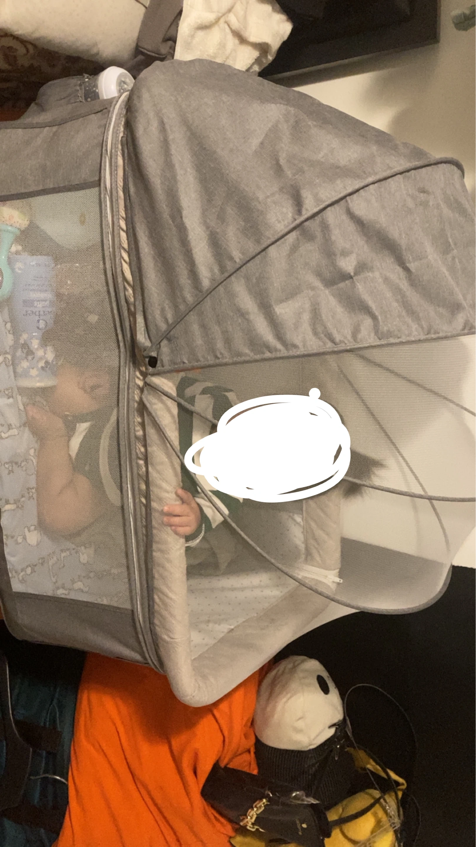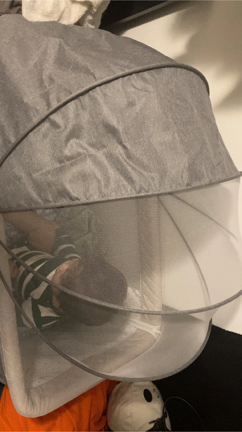 67Selling a portable baby crib in good condition! It's gray and has a net to keep your little one safe and sound. It's perfect for travel or small spaces only used a few times. It’s a bedside bassinet, can also rock and tilt to desired height.
