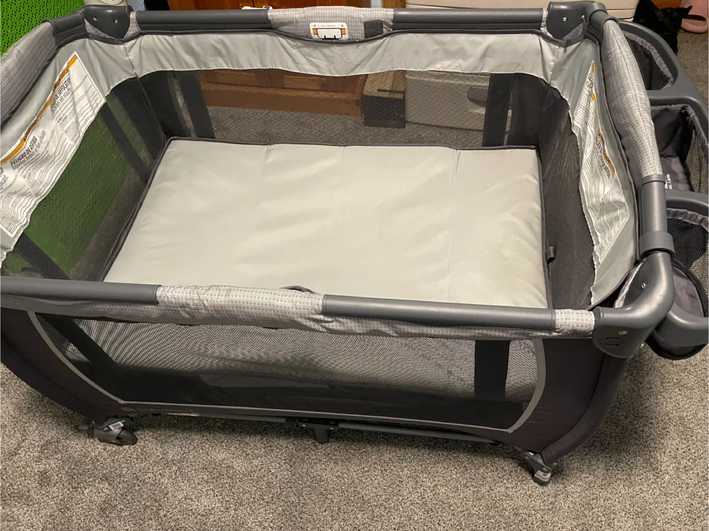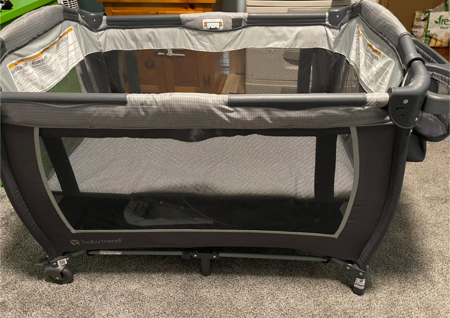 Selling a Baby Trend playard in good condition! It's a portable crib that's perfect for travel or keeping at grandma's house. It's easy to set up and take down, and comes with two bassinets.