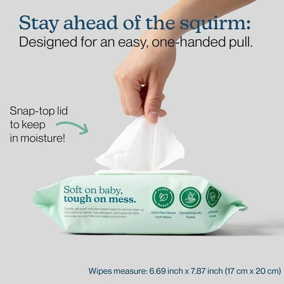 These hypoallergenic wipes are made with 99% purified water and plant-based ingredients, ensuring a natural and nourishing clean for your baby. Our wipes are carefully pH balanced to maintain your baby's natural skin balance and prevent irritation. We've made sure to exclude all harmful chemicals, plastic, and alcohol from our formula, so you can trust that you're using only the best on your baby's sensitive skin. Soft, strong, and effective, our Sensitive Baby Wipes provide the perfect combination of comfort and cleanliness for your little one during diaper changes and beyond.