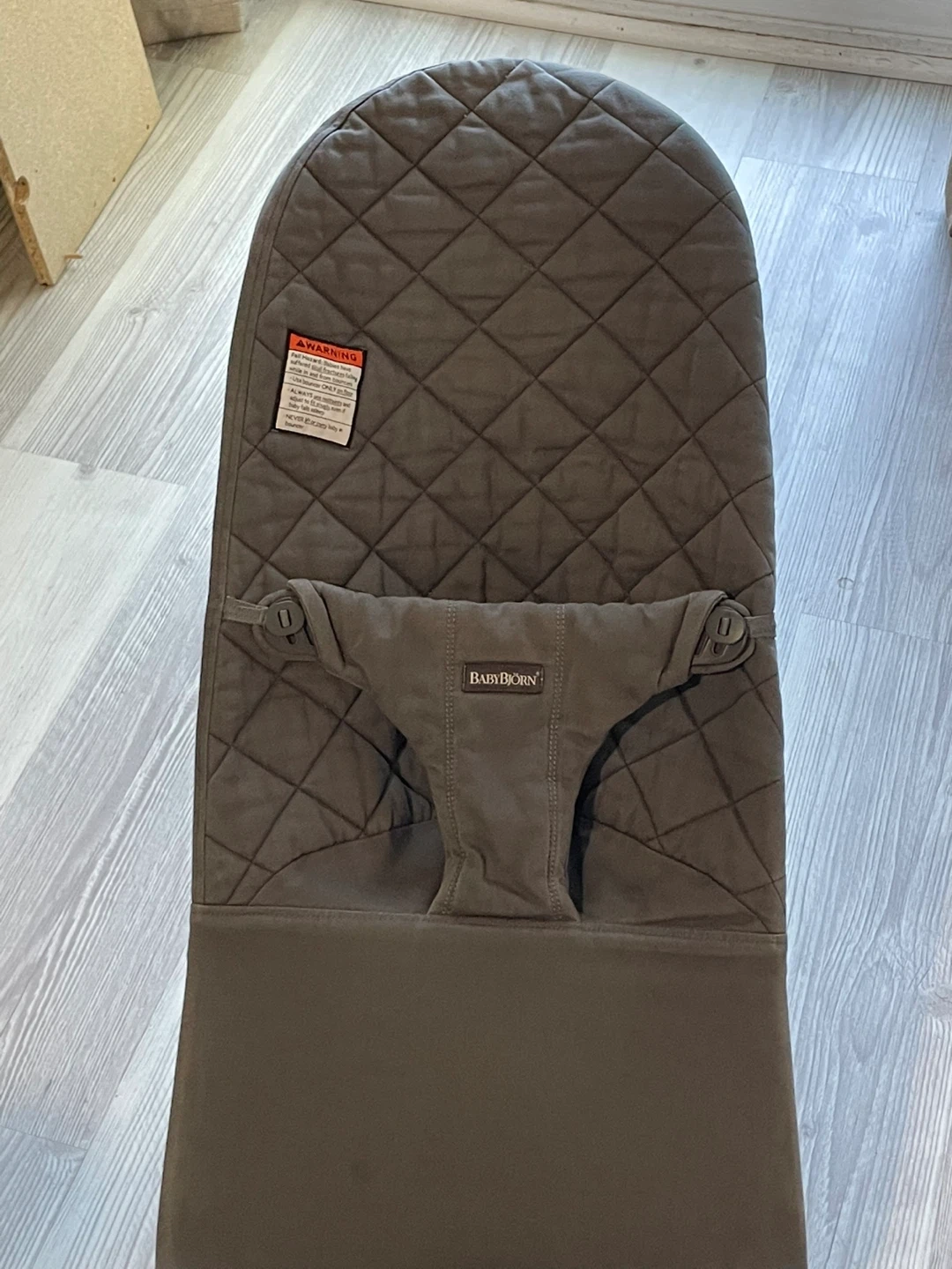 BABYBJÖRN Bouncer Balance Soft in a neutral brown color. This bouncer is perfect for soothing your little one and providing a safe and comfortable place to relax. It's in great condition and ready for a new home!