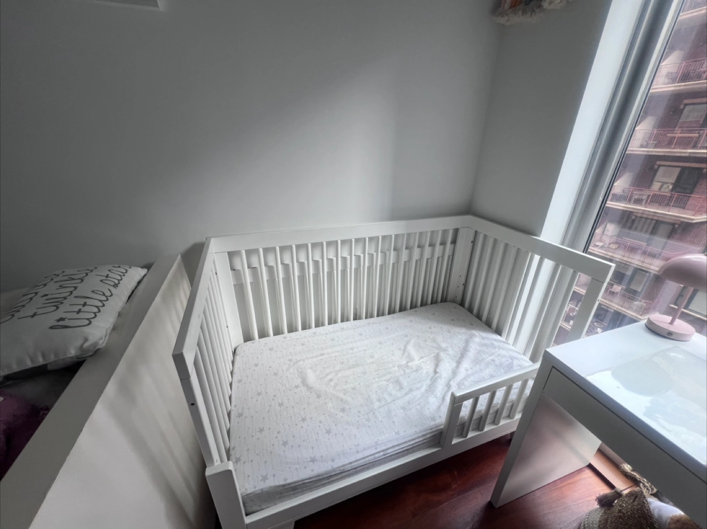 Selling a Babyletto Hudson 3-in-1 Convertible Crib in white. This stylish crib easily converts to a toddler bed and daybed, growing with your child. It's made from sustainable New Zealand pine wood and has a non-toxic finish. A great addition to any nursery!