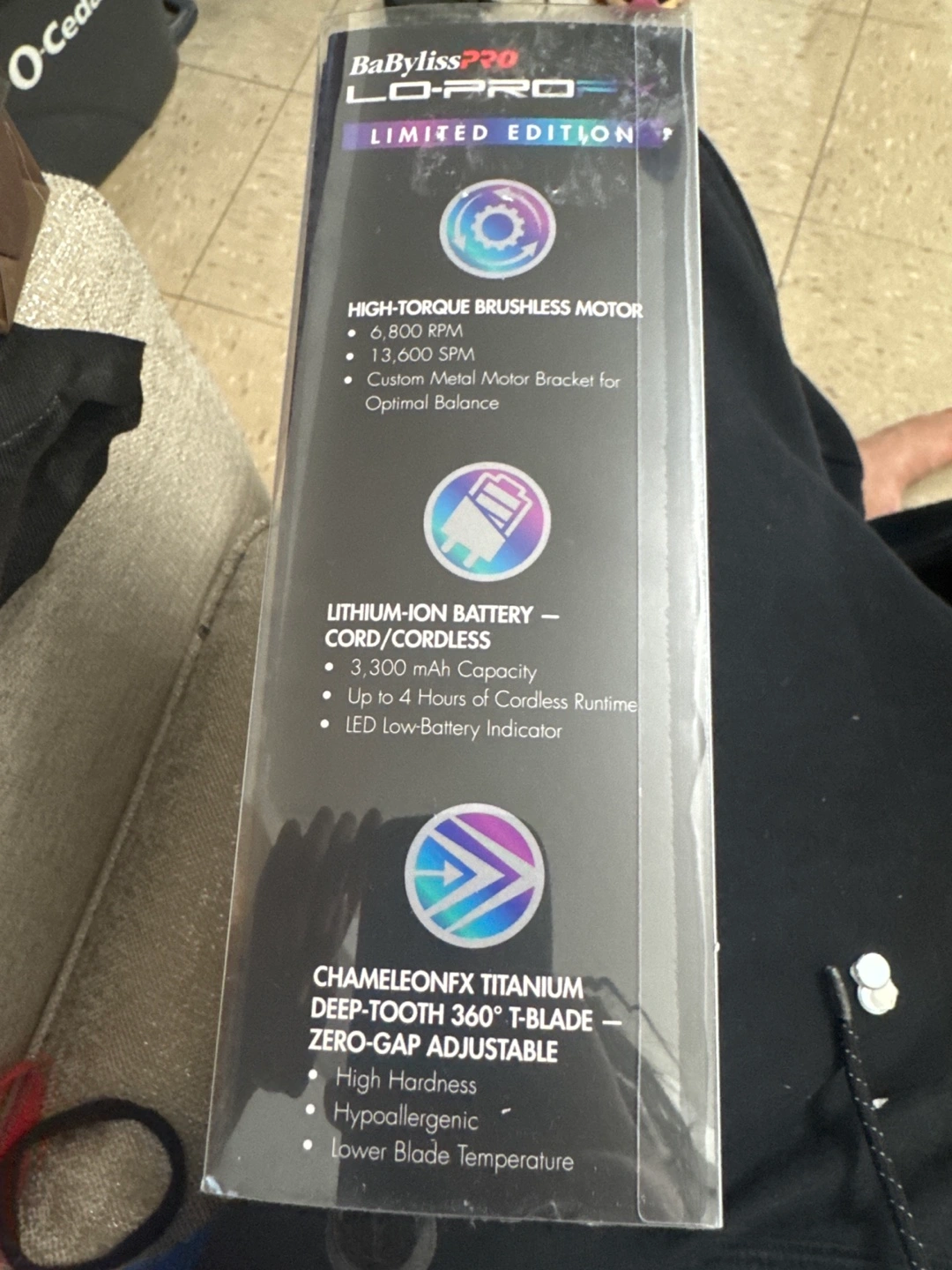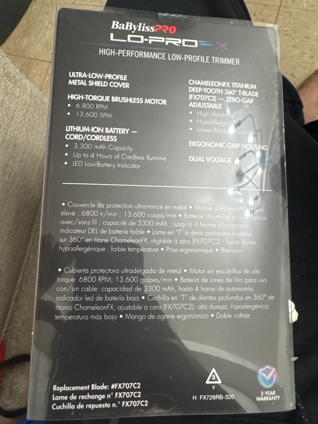High-performance low-profile trimmer. Cordless. Lithium-ion battery. Up to 4 hours of cordless runtime. Chameleonfx titanium deep-tooth 360° T-blade. Zero-gap adjustable. High-torque brushless motor. 6,800-13,600 RPM. Includes replacement blade #FX707C2.