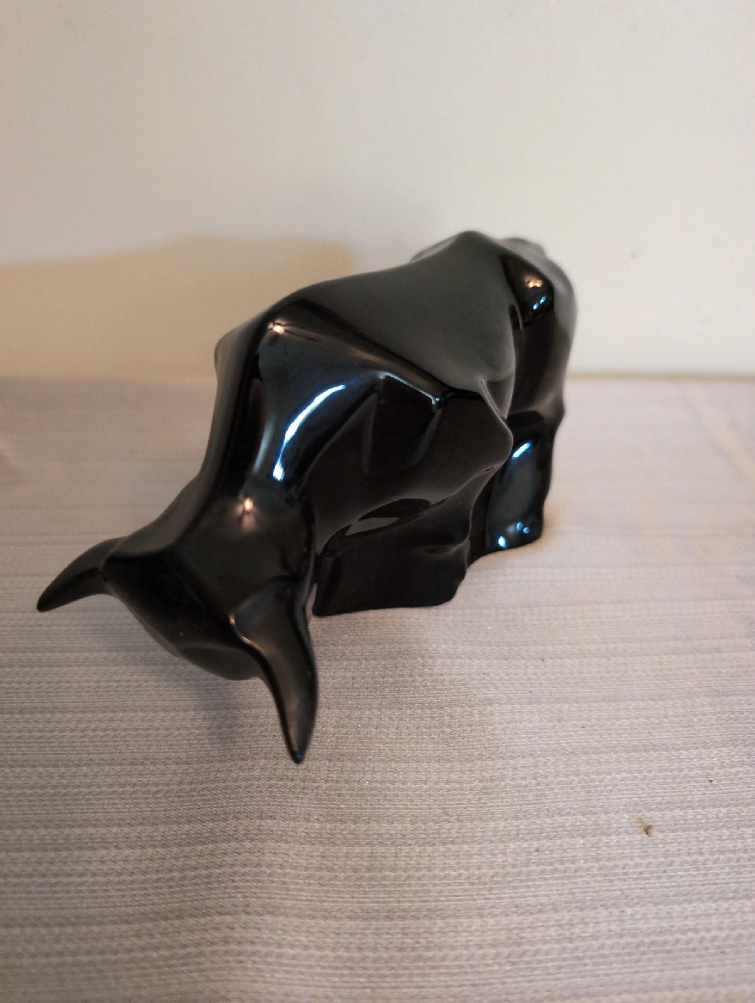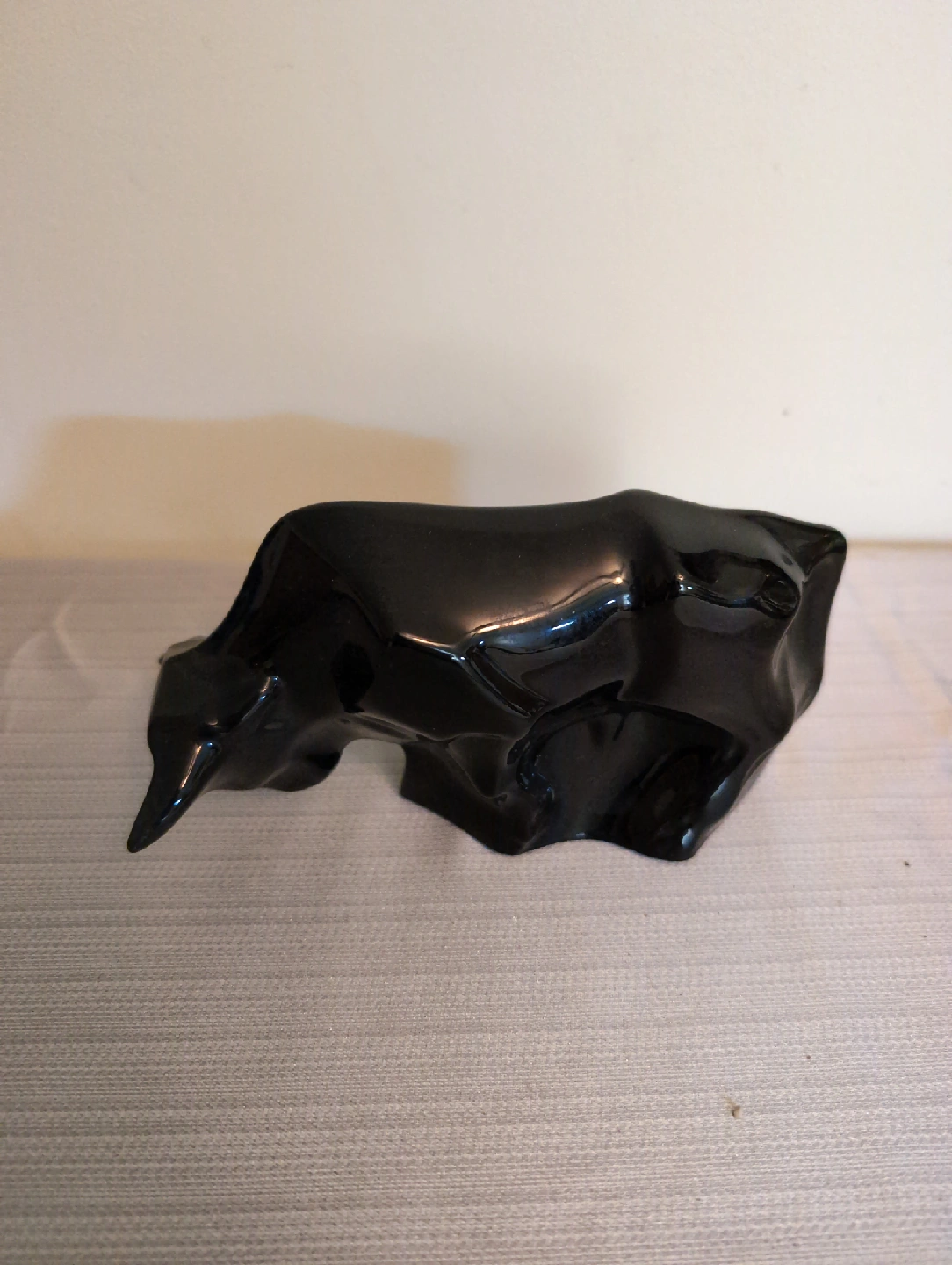 Selling a Baccarat black bull sculpture. It's in good condition and would look great as a decorative piece in your home or office.