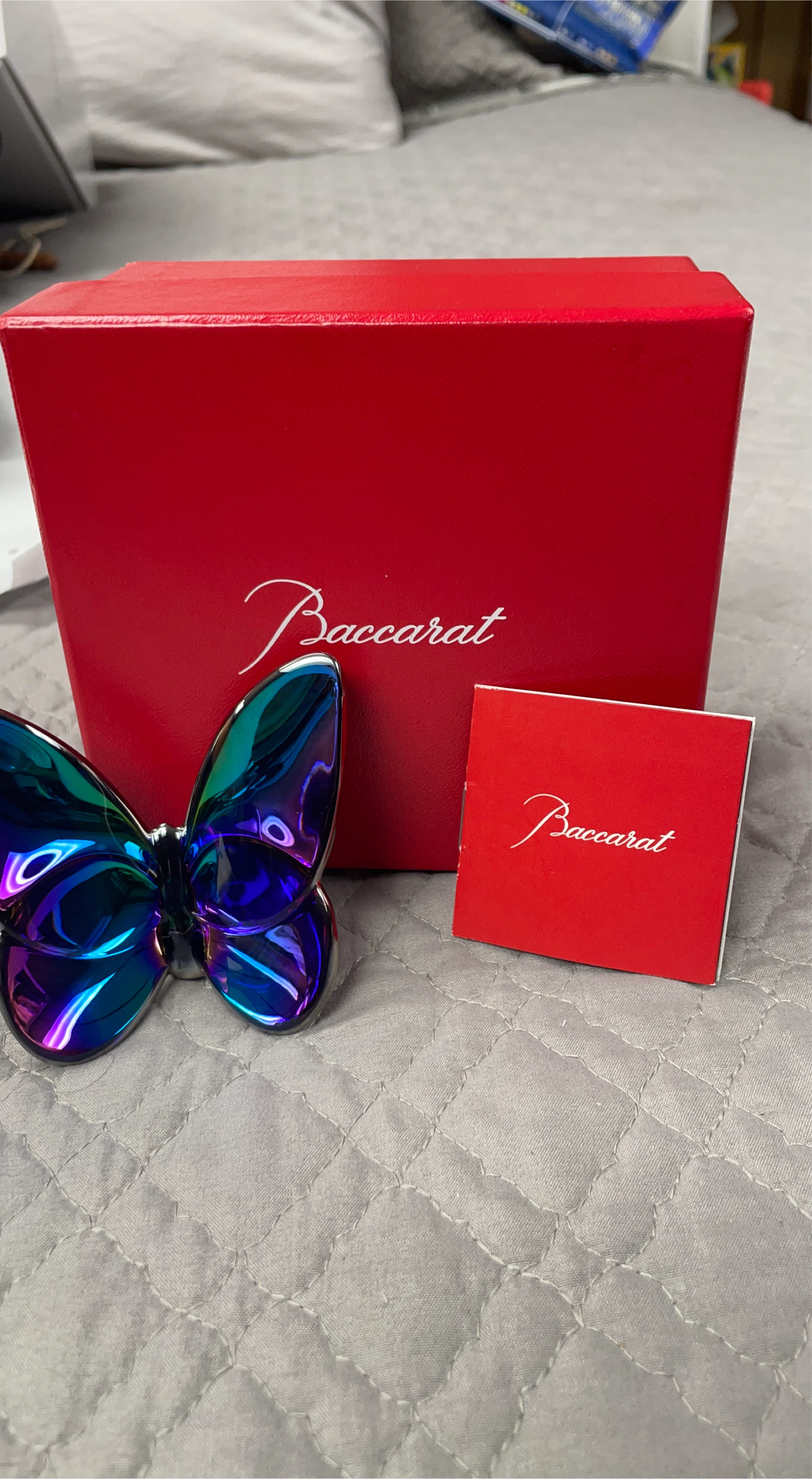 Selling a beautiful Baccarat crystal butterfly. It has an iridescent finish that catches the light wonderfully! Comes with the original box and paperwork