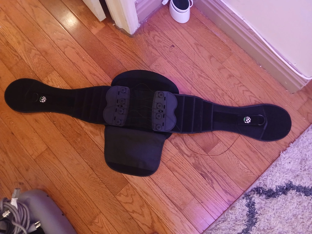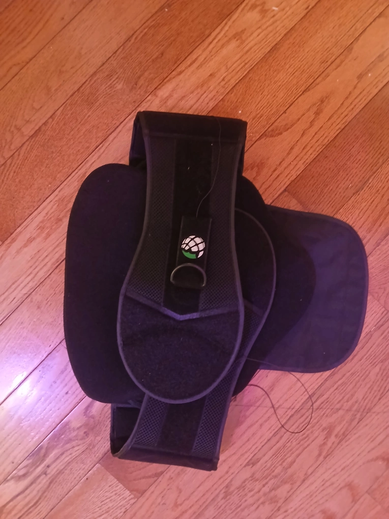 This Back On Trac device is designed to help relieve back pain. It is black and appears to be in good condition. It features a unique design with multiple adjustable components for customized support