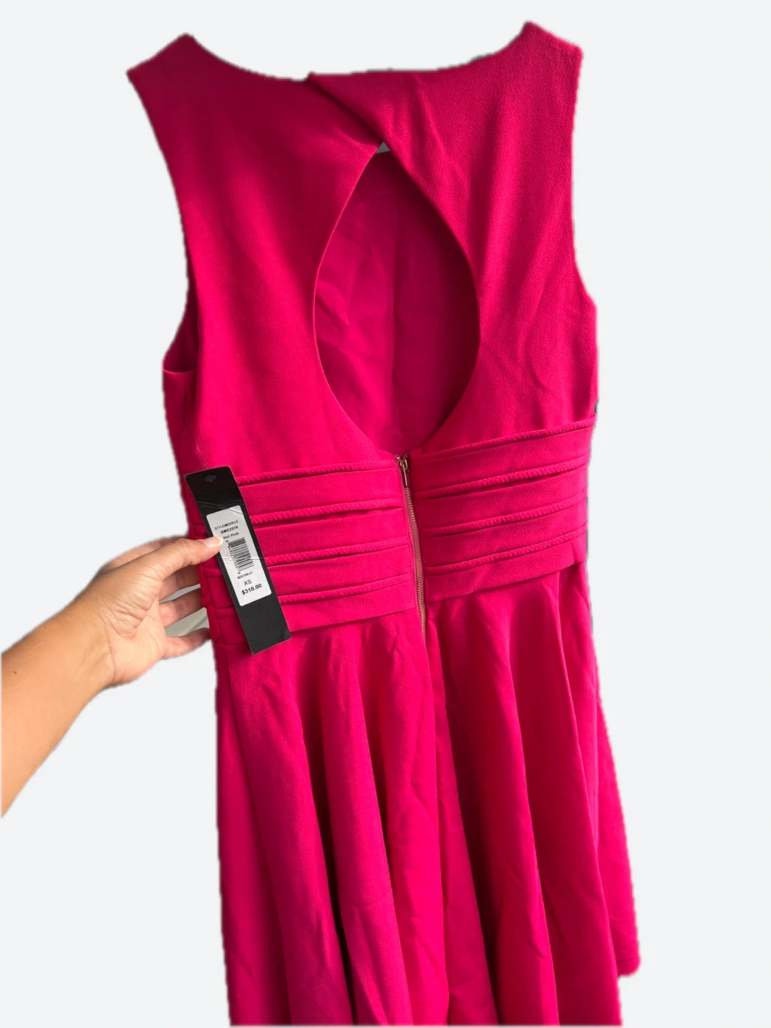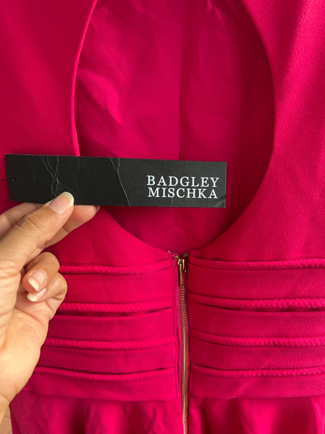 Selling a Badgley Mischka dress in a vibrant pink color! It features a unique open back design and a pleated skirt. Perfect for a special occasion or a night out. Size XS. Brand new. Retails for $310