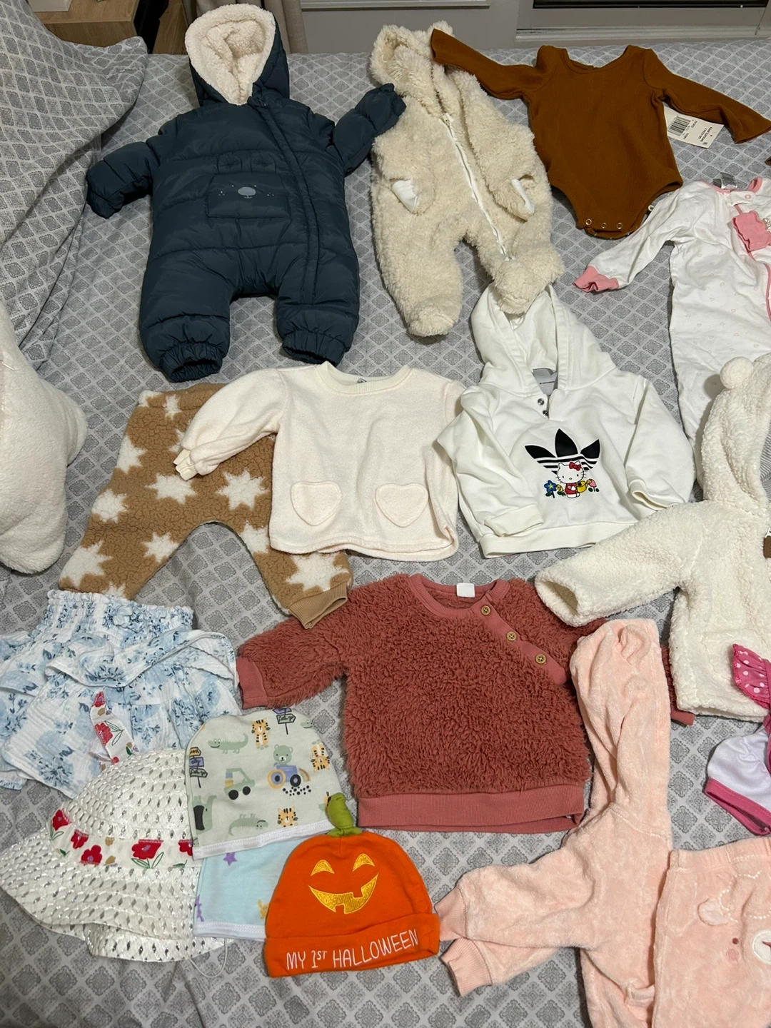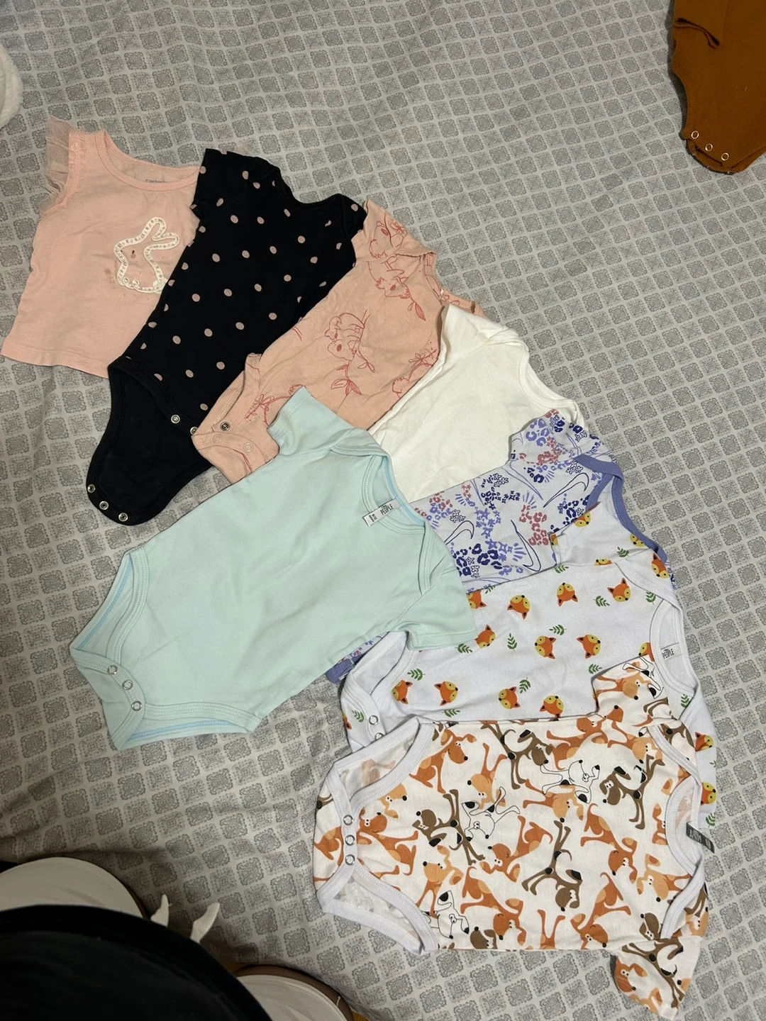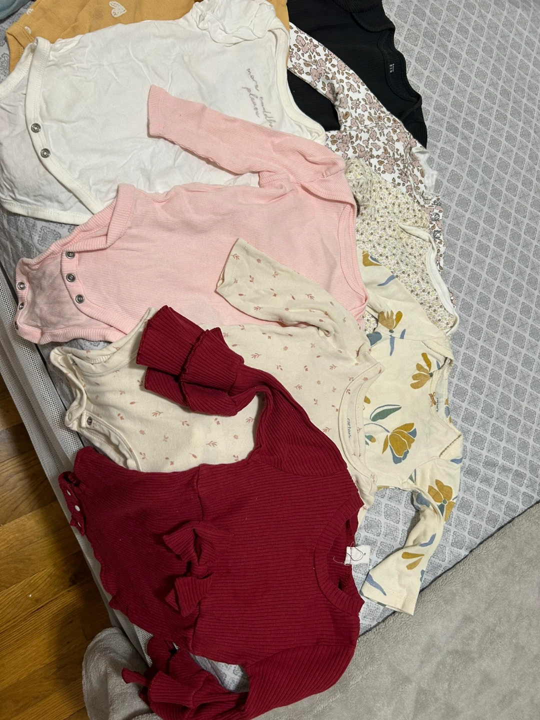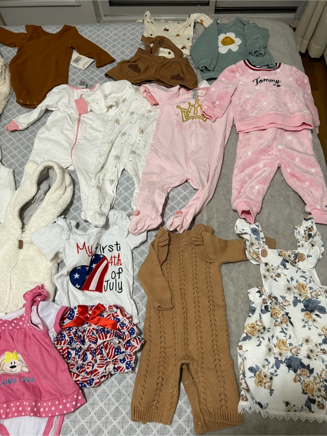 Selling a bag of baby girl clothes! There's a variety of colors and styles inside like PJ, short and long sleeves bodies, dresses, socks, hats, pants, perfect for a little one. The bag weight about 20 Lbs.