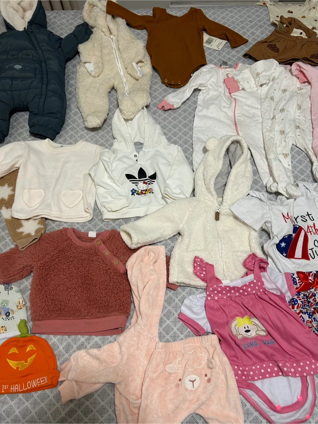 Selling a bag of baby girl clothes! There's a variety of colors and styles inside like PJ, short and long sleeves bodies, dresses, socks, hats, pants, perfect for a little one. The bag weight about 20 Lbs.