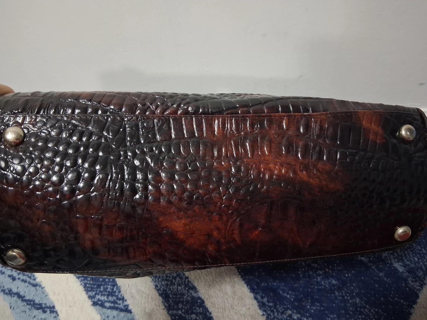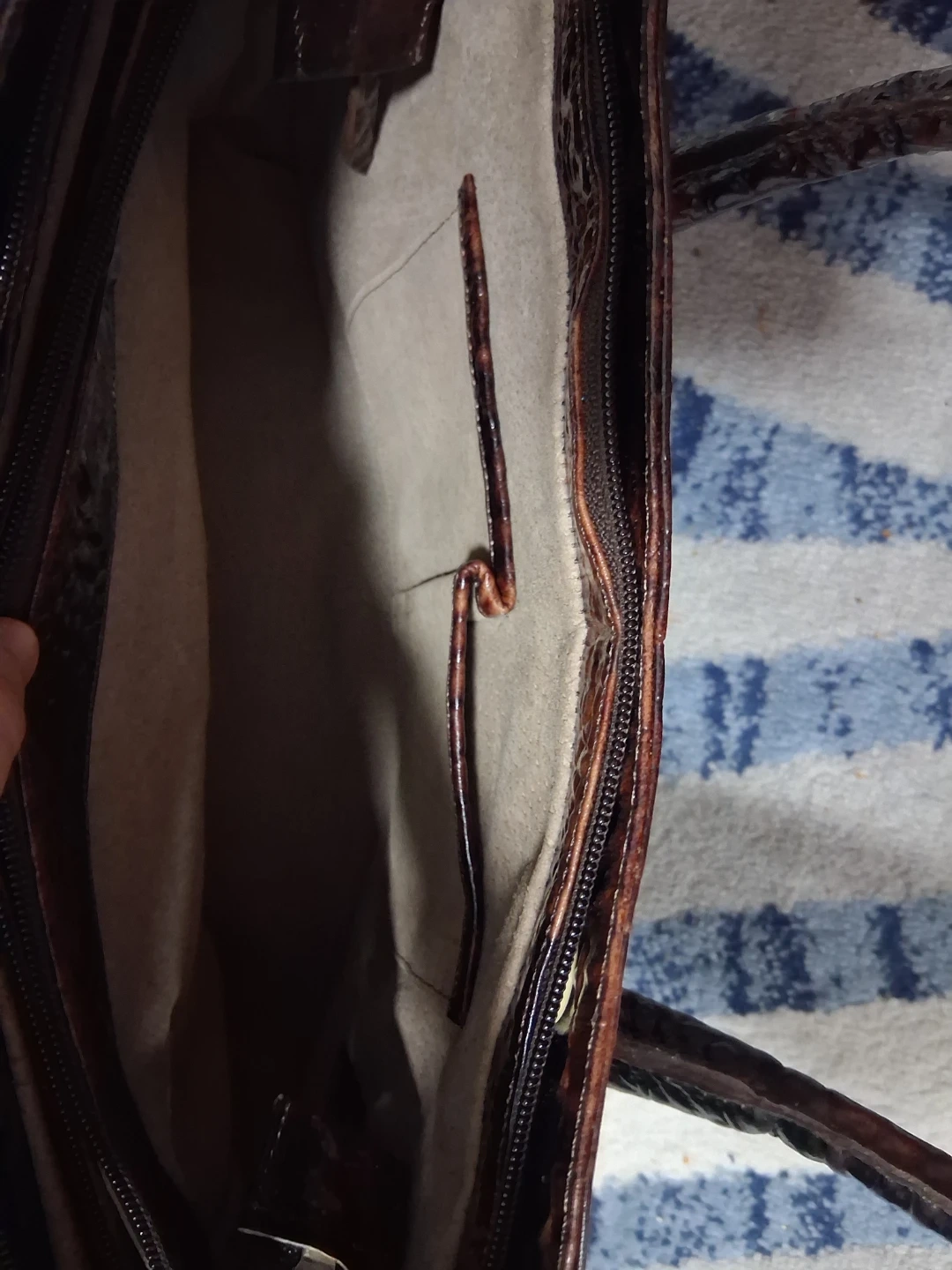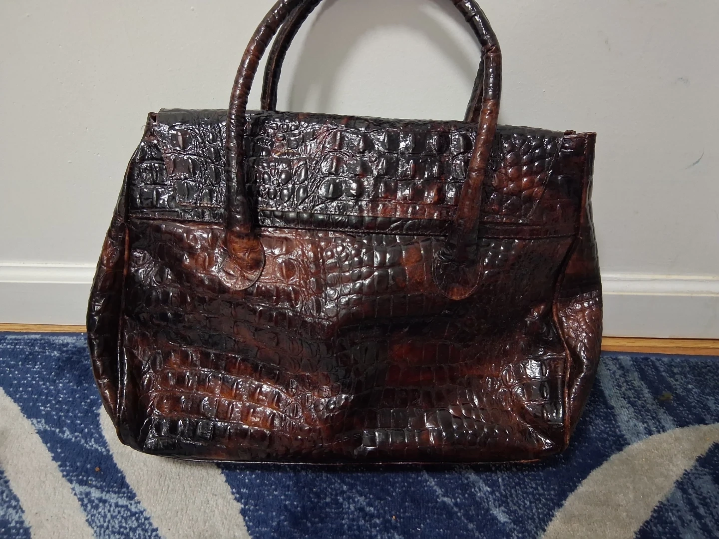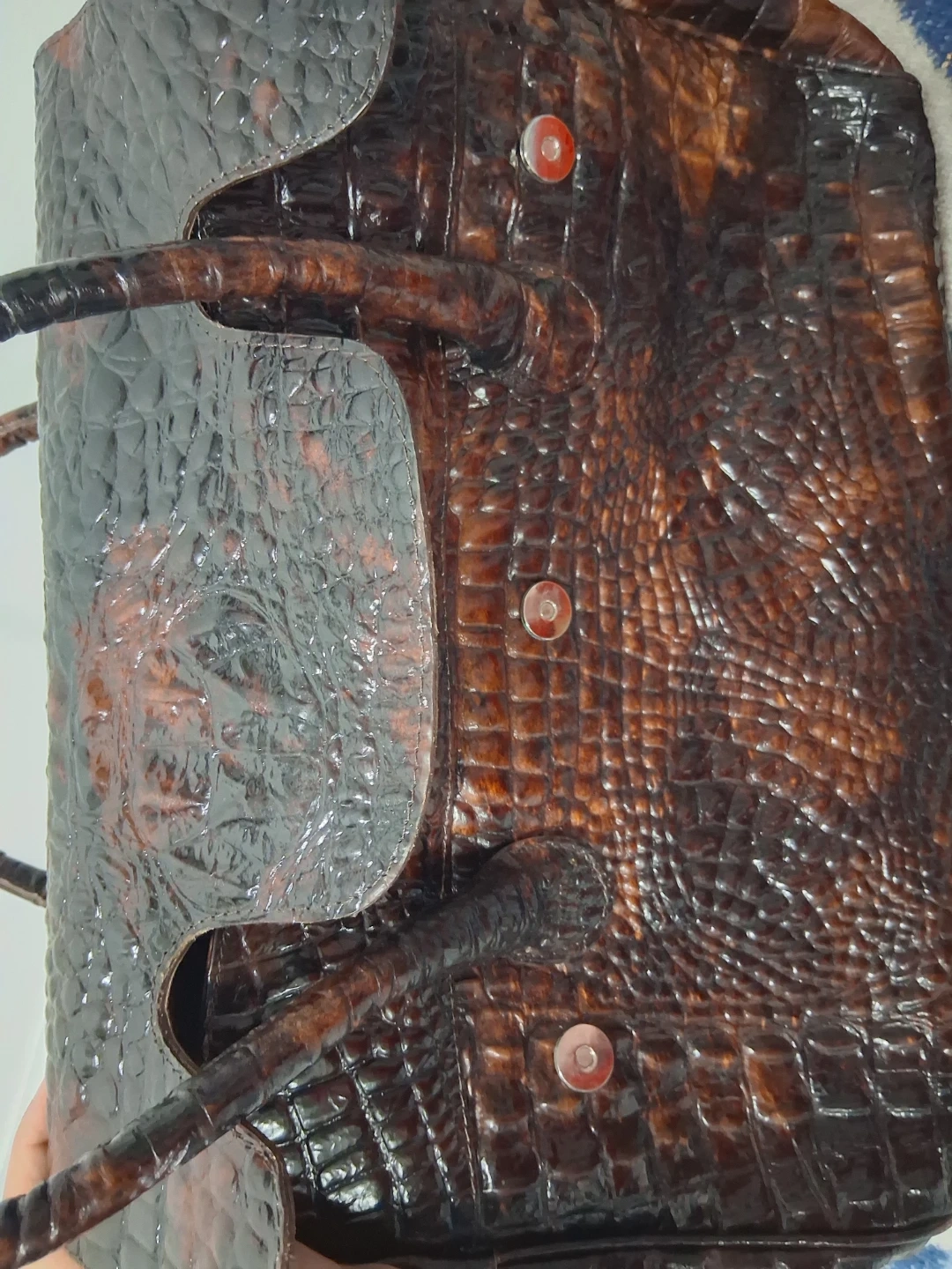 This is a brown leather bag from Animal Exotic. It has a unique style and authentic crocodile leather bag . It's in good condition and ready for a new home!