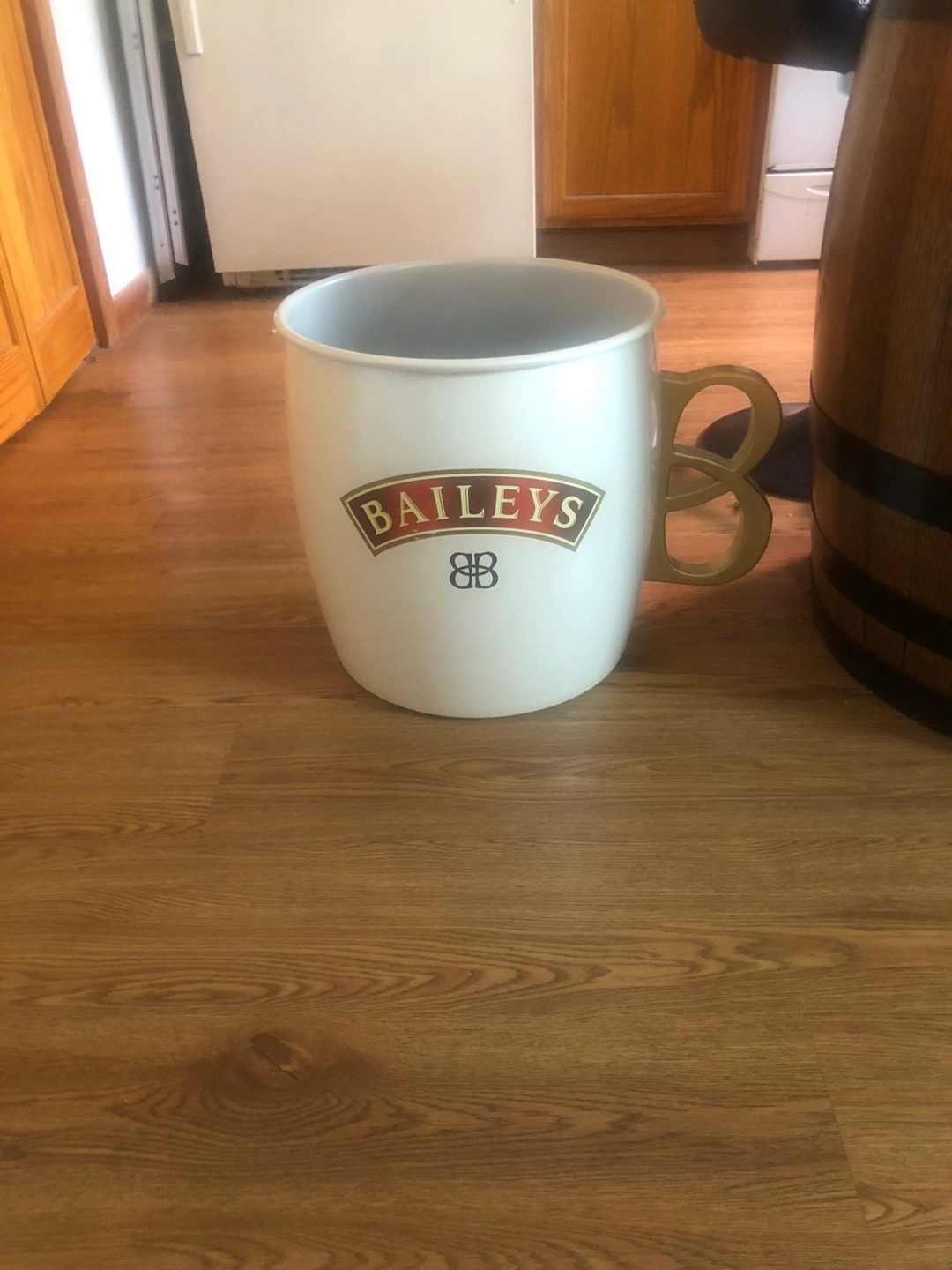 Selling a Baileys mug. It's in used condition, but still has a lot of life left in it! It’s extra large for decor it’s not a drinking size mug .