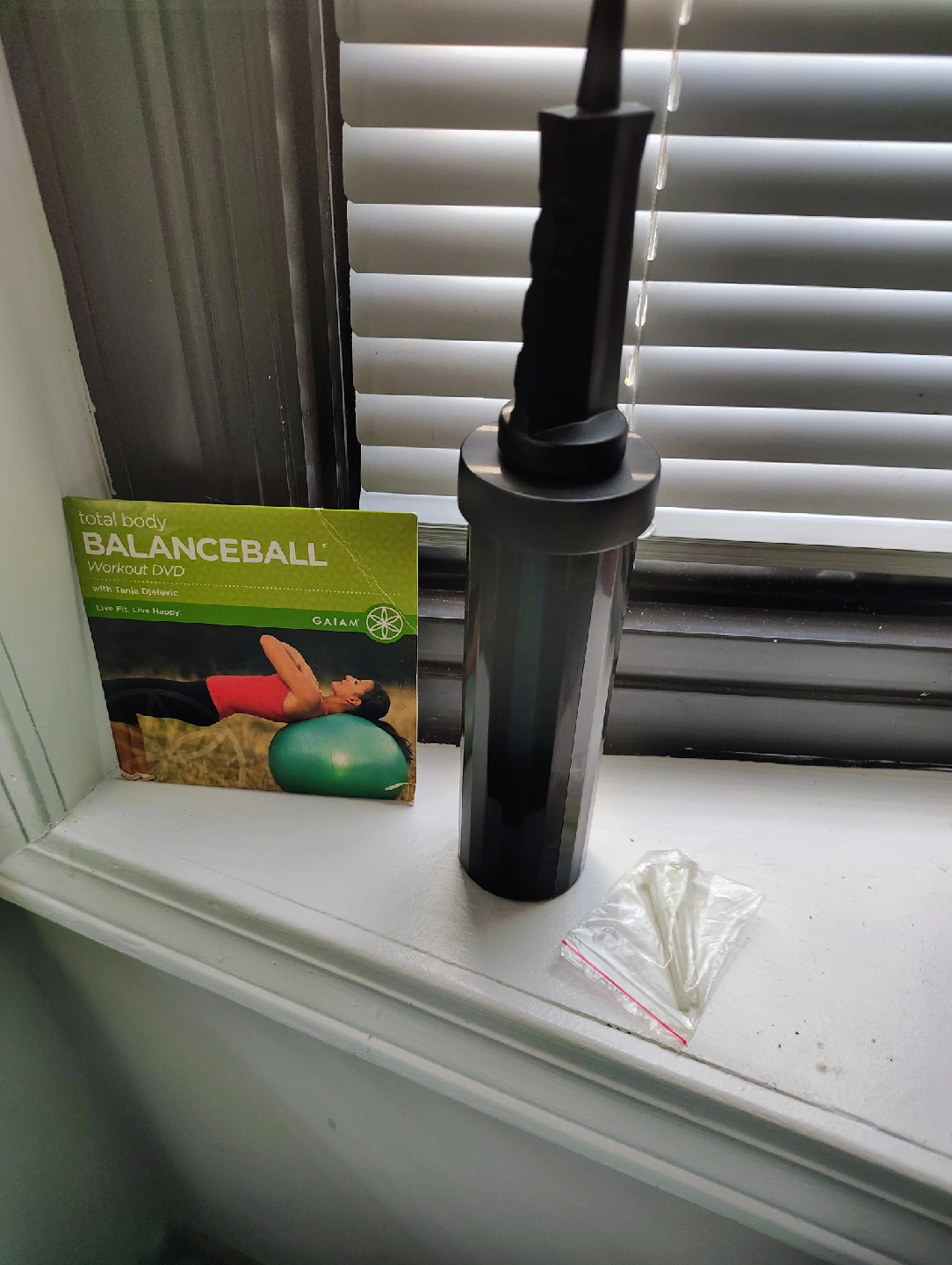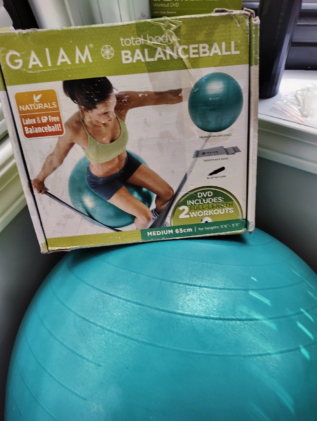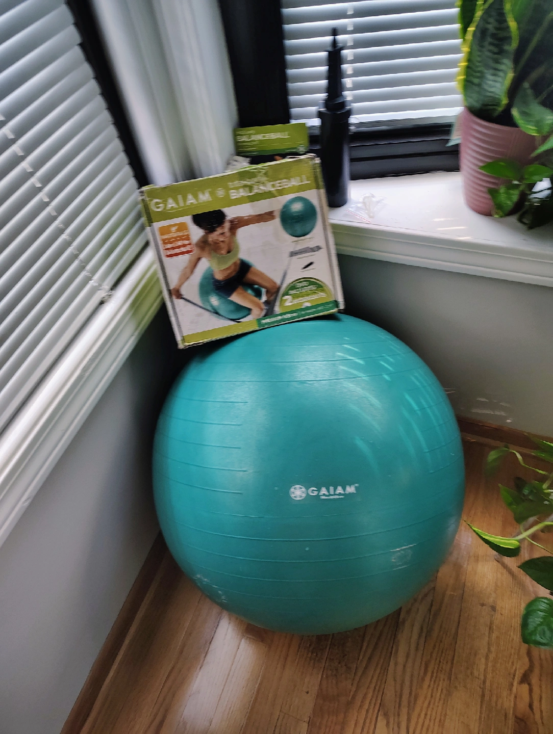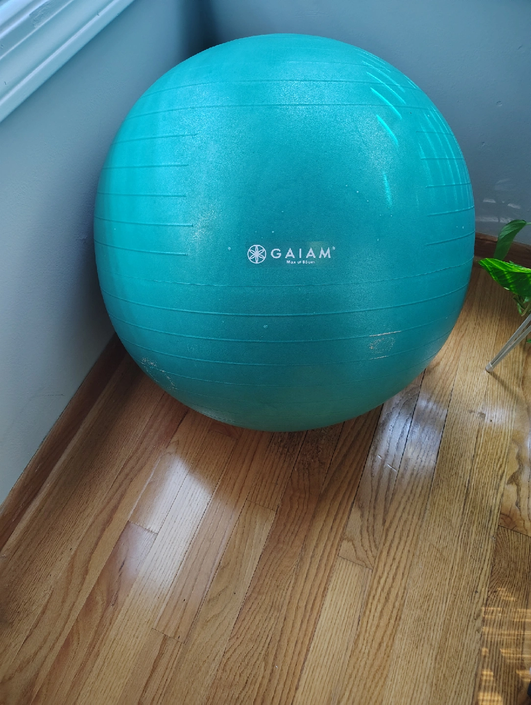 Green balance ball with air pump and plugs . Must purchase soon moving!