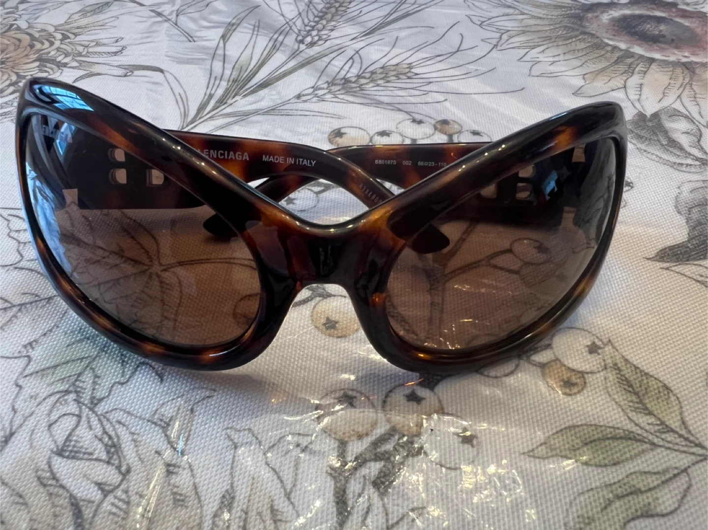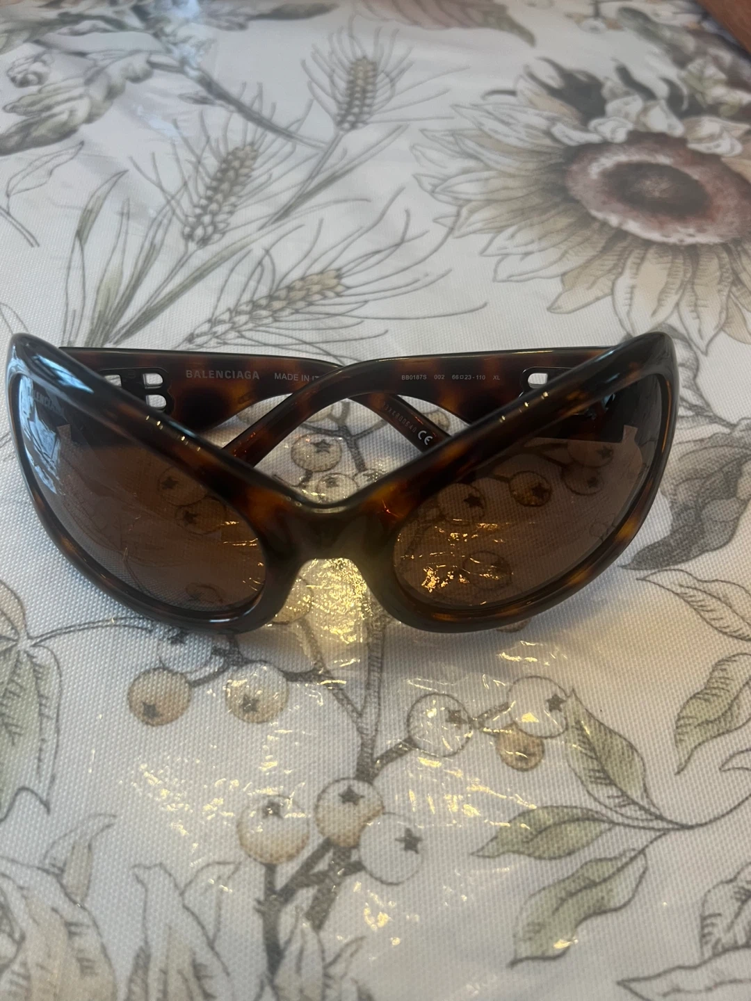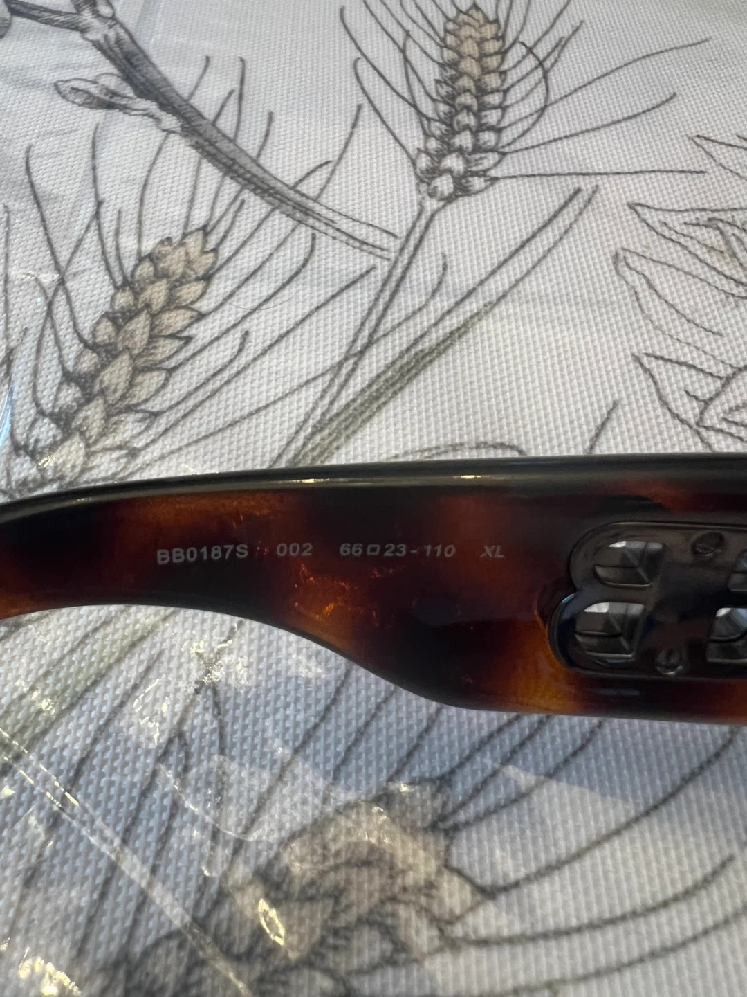 Selling a pair of Balenciaga sunglasses in a tortoise shell color. The model number is BB0187S 002, and they are a size XL. They are in good condition and ready for a new home!