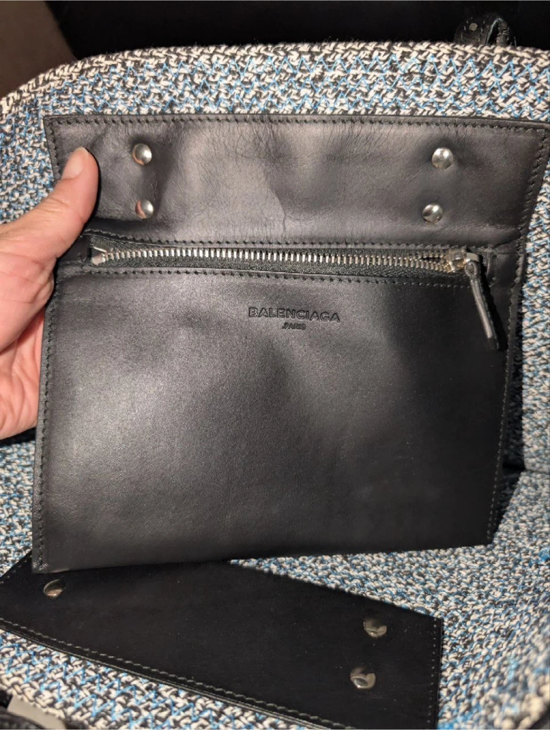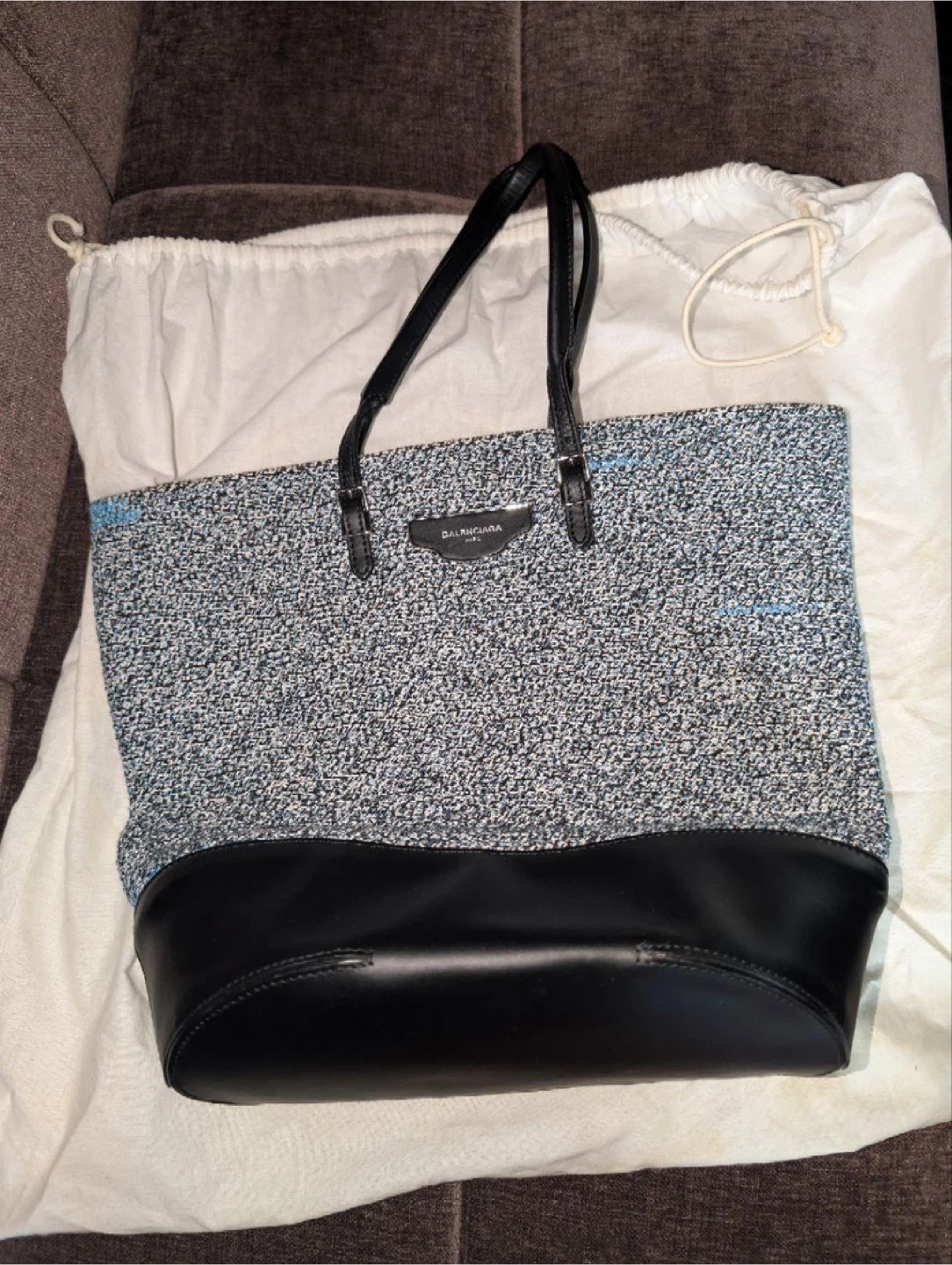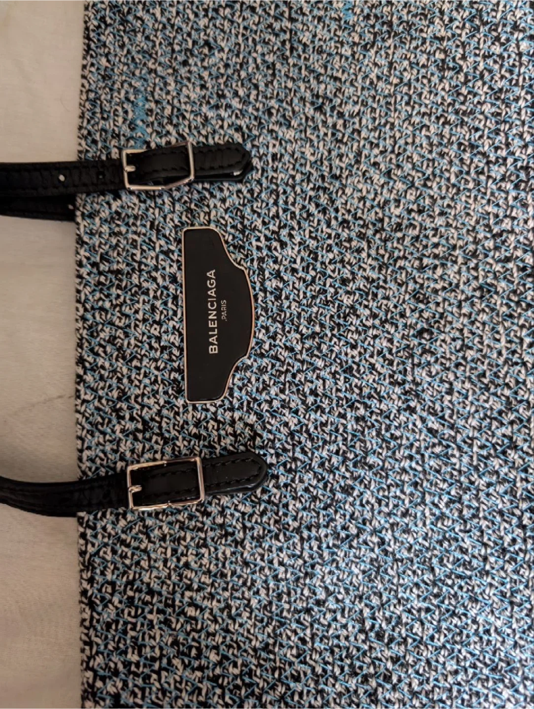 Selling a Balenciaga tote bag in a stylish blue and black color combination. It's in great condition and ready for a new home! Perfect for everyday use or as a chic accessory Retail is 1600
