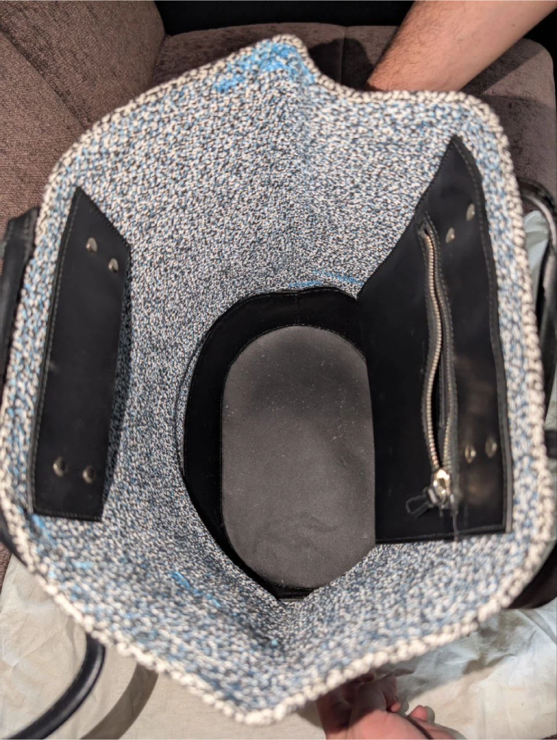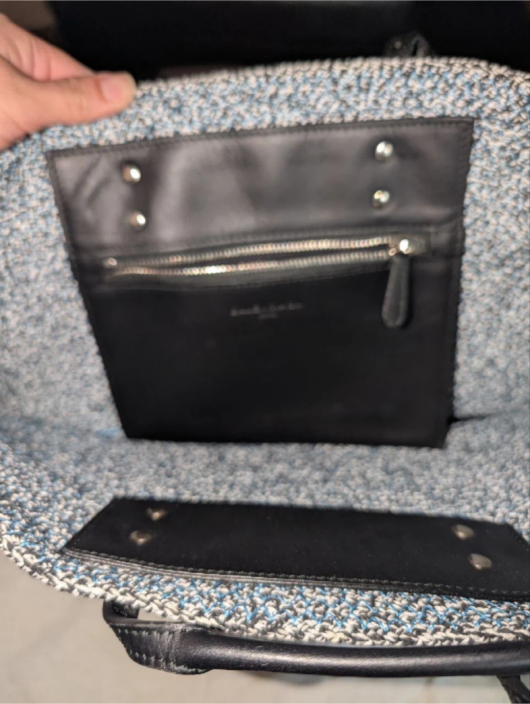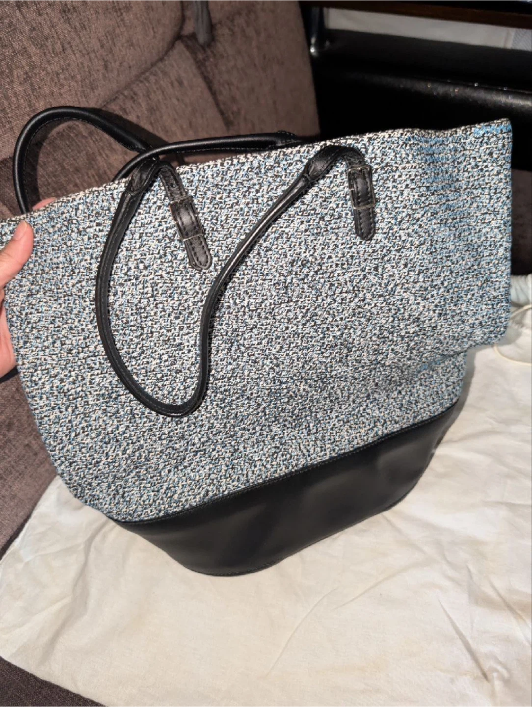 Selling a Balenciaga tote bag in a stylish blue and black color combination. It's in great condition and ready for a new home! Perfect for everyday use or as a chic accessory Retail is 1600