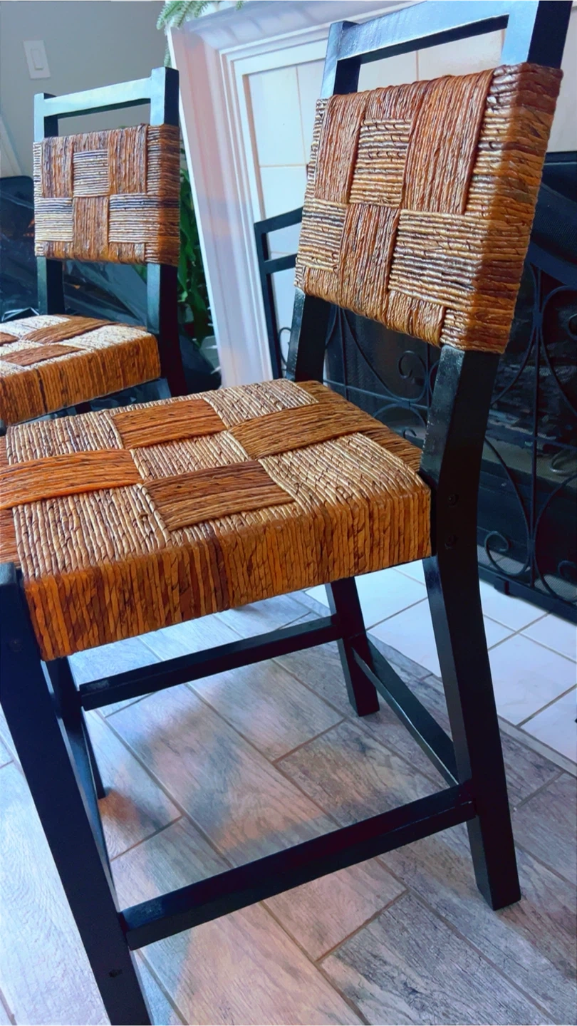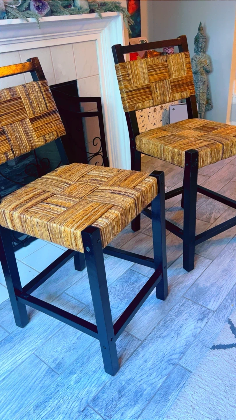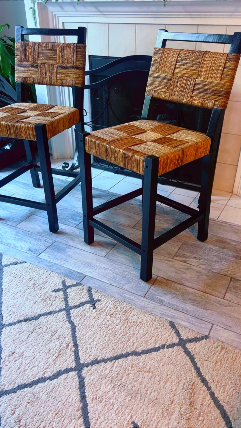 Selling a set of Bali & Pari counter stools! They feature a beautiful natural weave and sleek black wood frames. These stools are brand new and come in their original box. The dimensions are 40.3 x 10.2 x 20.5 inches.