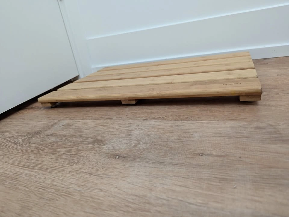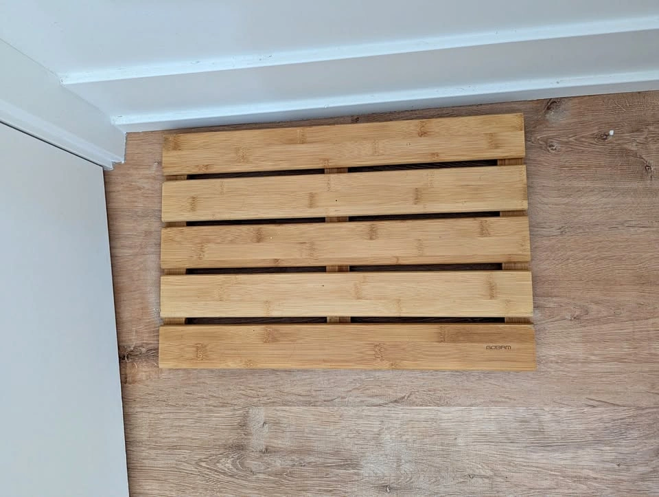 15Gobam Bamboo. Water repellant shower mat. Let me know if you're interested!