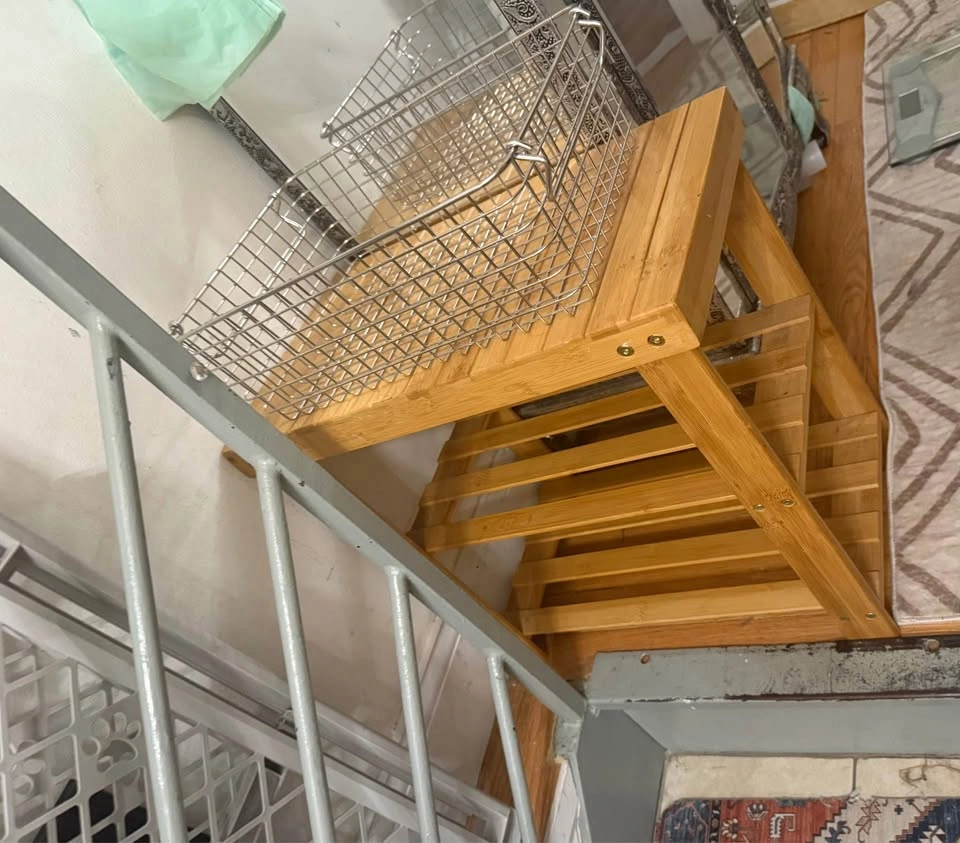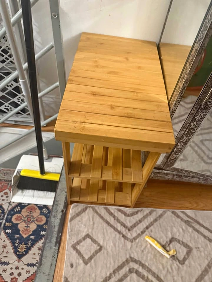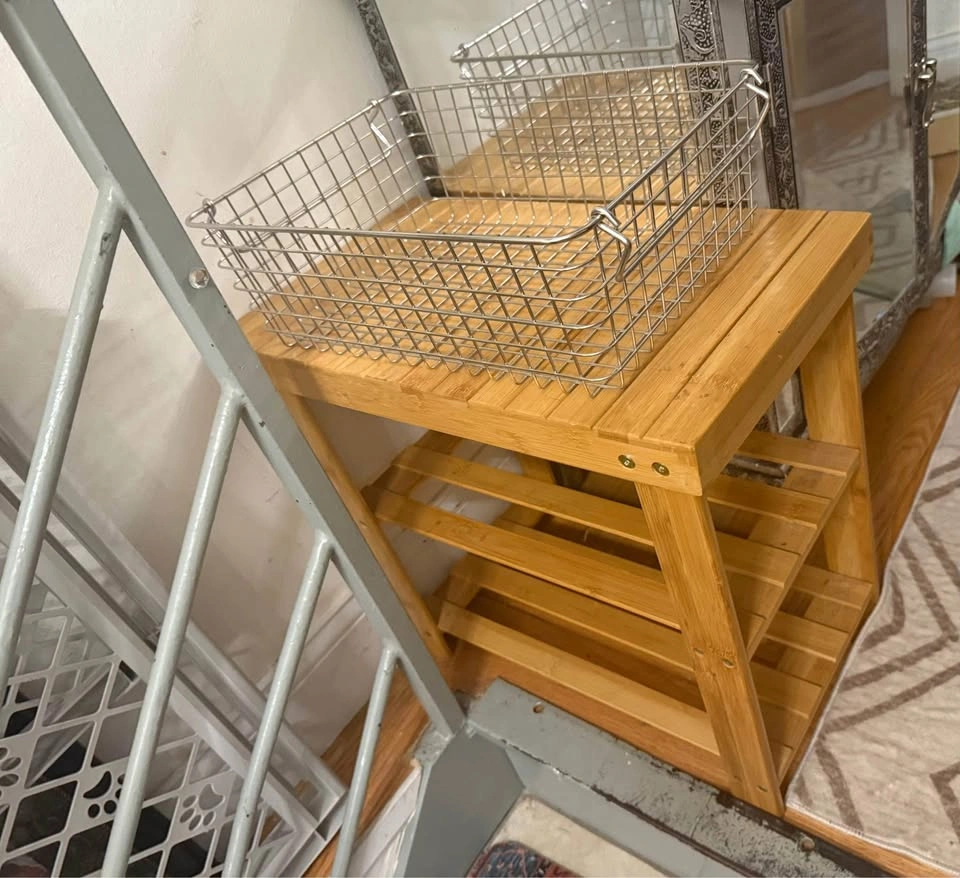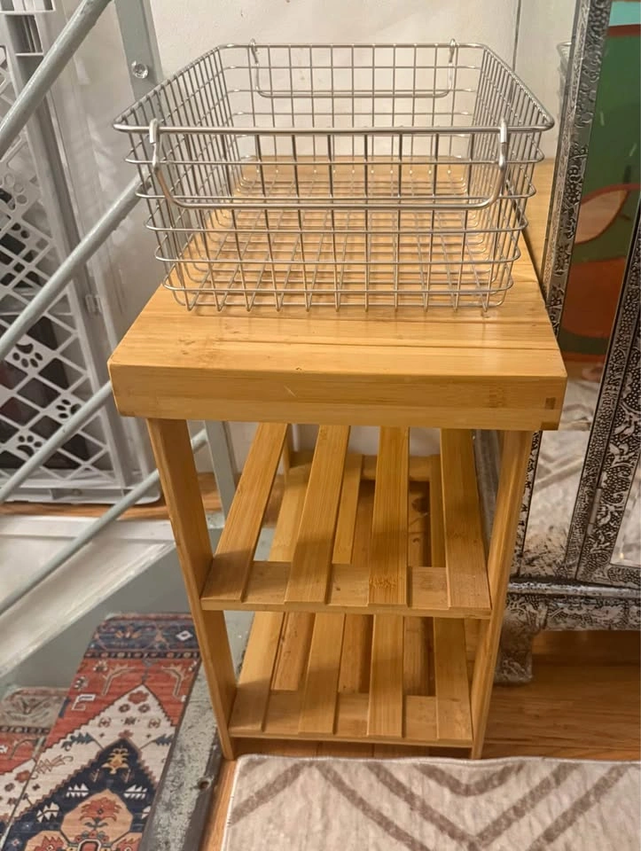 Bamboo shoe rack in good condition. Basket included for $25. Hell’s Kitchen pick-up