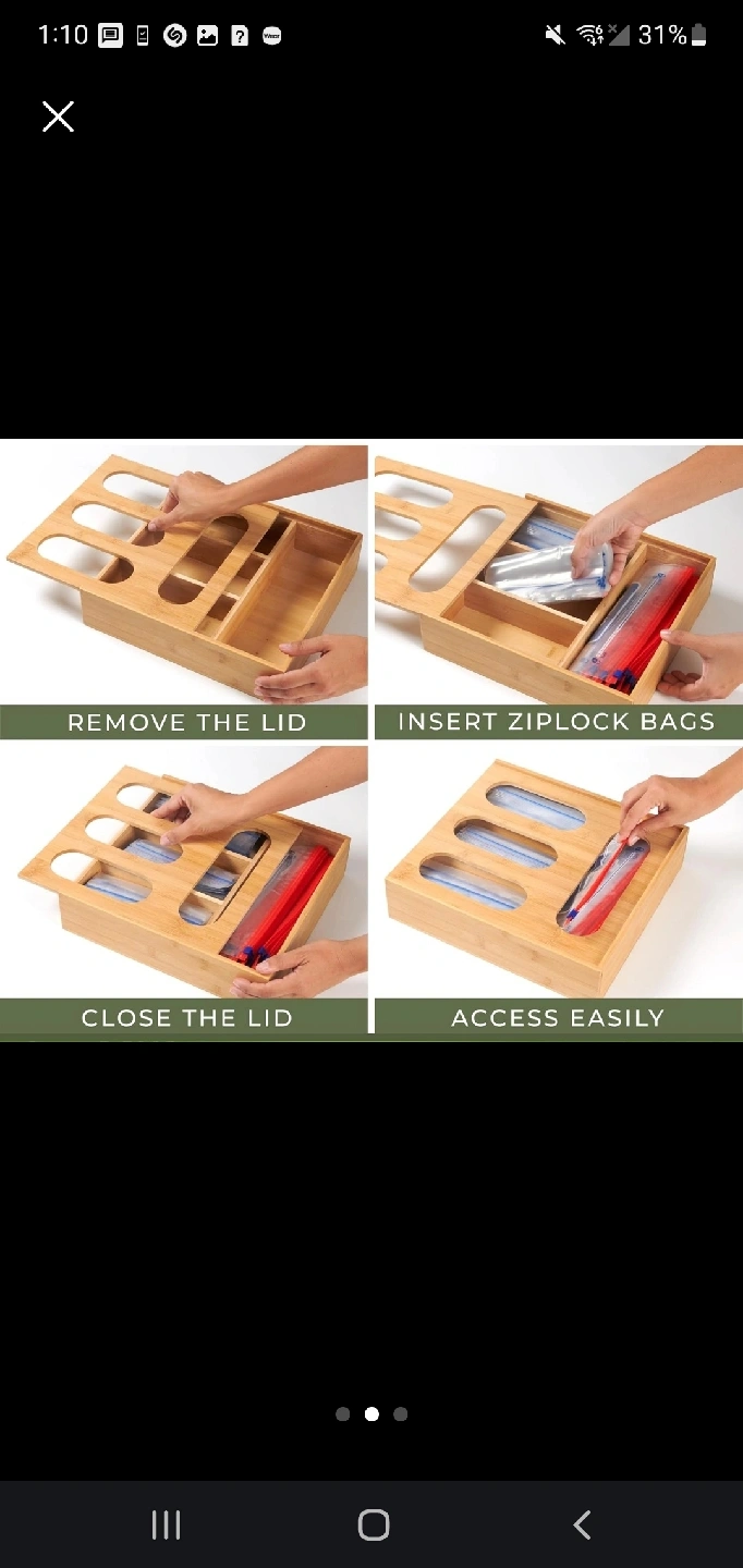 Keep your kitchen drawers organized with this classic Monoblock design bag organizer! It has 4 compartments for gallon, quart, snack, and sandwich bags. The dimensions are about 12 inches in height and 12.6 inches in width. It's a great space-saving solution!