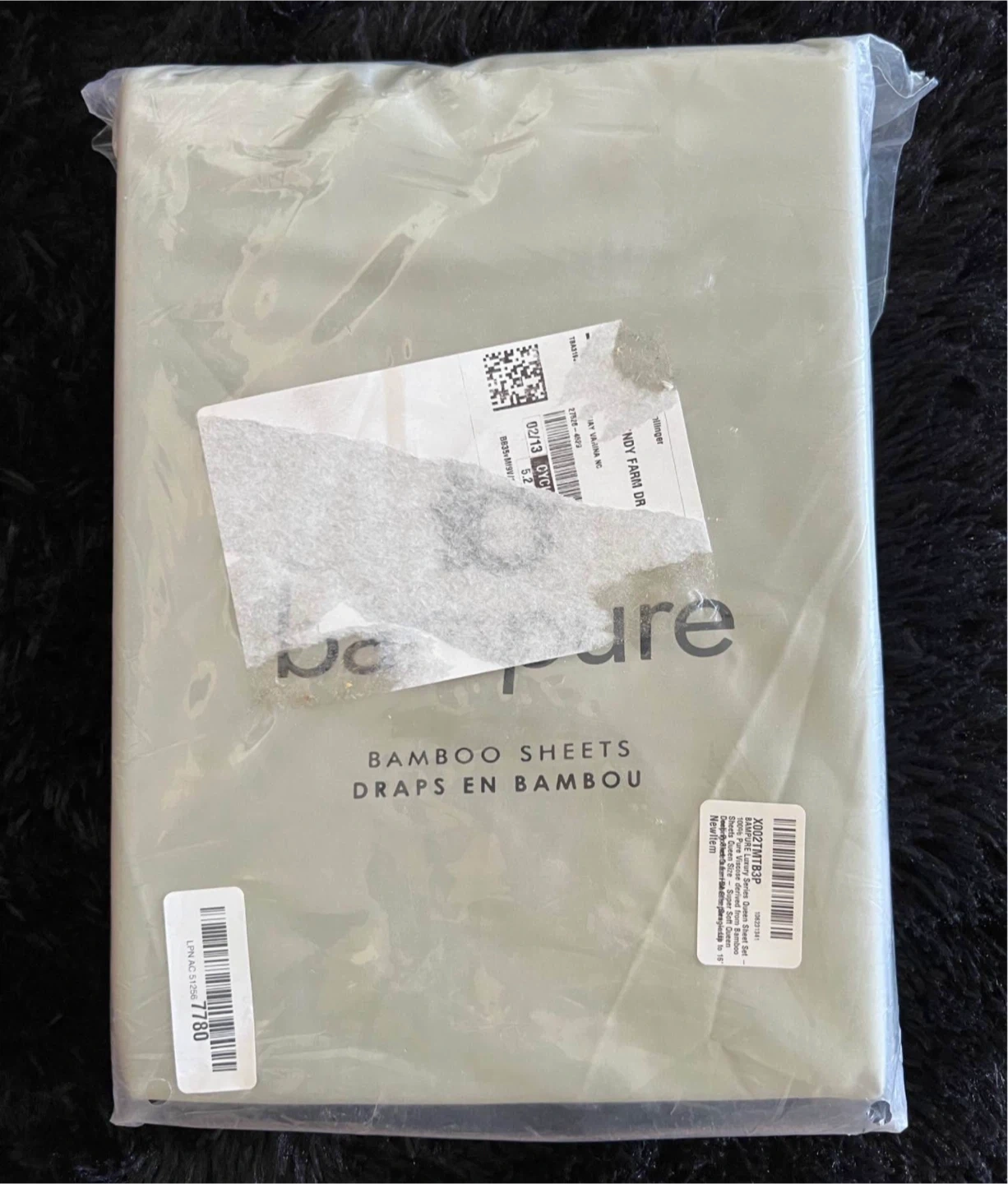 Selling a brand new Bampure Luxury Series Queen Sheet Set! These sheets are made from 100% Viscose derived from Bamboo, making them softer and cooler than Egyptian Cotton. They are also hypoallergenic and wrinkle-free. Originally bought for $99.99