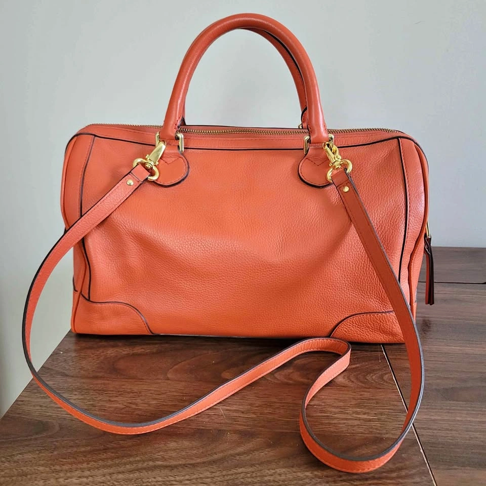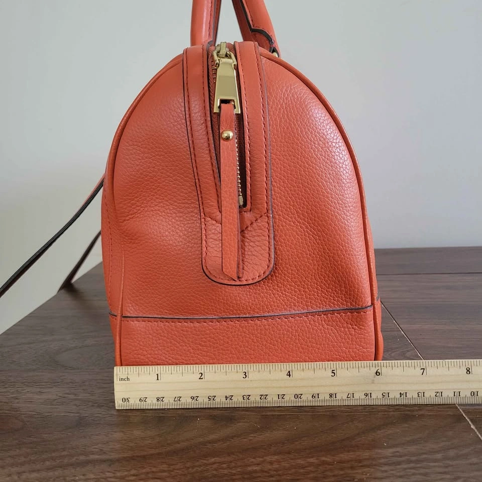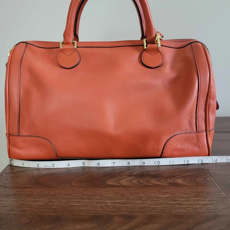 10Material: Shell: Cow leather Comments: Damp wipe only for cleaning purposes Please see pictures for size/ measurements Item is stored in a smoke-free and pet-free environment Cash only and no returns Must pick up About this item: • Gold tone hardware • Top zipper closure • Inside bag has 2 slip pockets and a zipper pocket.