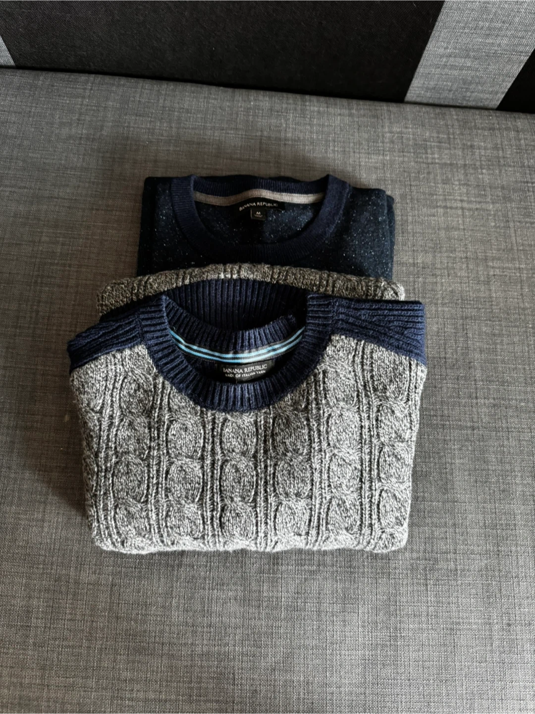 10Selling a two Banana Republic sweaters (price is for the bundle). They are in good condition and ready for a new home! Both are size medium men’s. Please see the photos for details on each sweater.