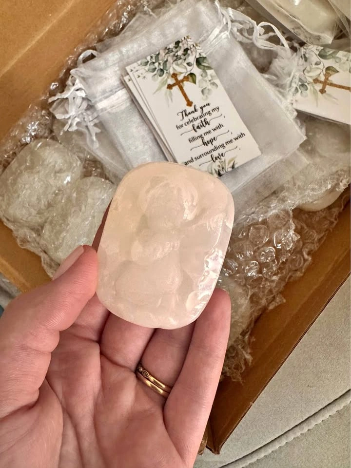 60We have 18 angel soap with thank you notes and bags. Can be used for baptism/baby shower