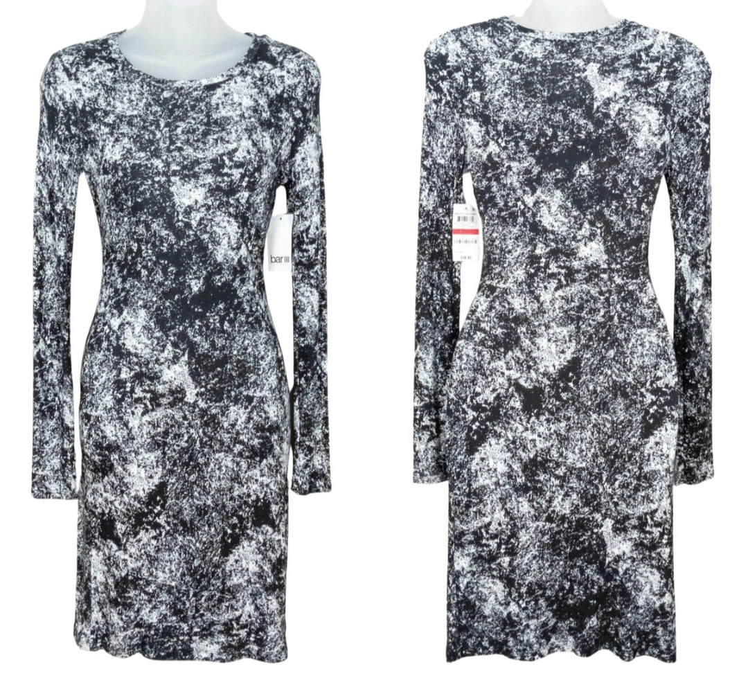 Black and white mini dress. Long sleeves. Fitted silhouette. Allover abstract print. Size small.