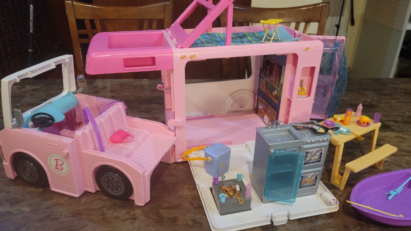 40¡Vendo un set de juguetes Barbie Dream Camper! Este set incluye una caravana rosa, un coche, un barco y varios accesorios para un juego imaginativo sin límites. ¡Perfecto para cualquier fan de Barbie!