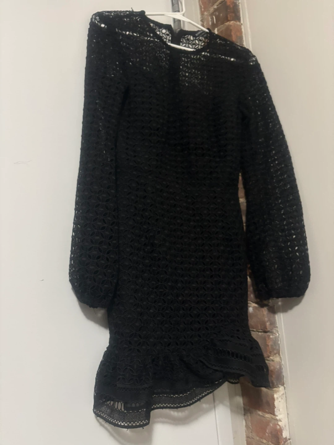 Selling a beautiful Bardot black lace mini dress! It has long sleeves and a lovely ruffled hem. Perfect for a night out or a special occasion. The dress is in great condition and ready for a new home
