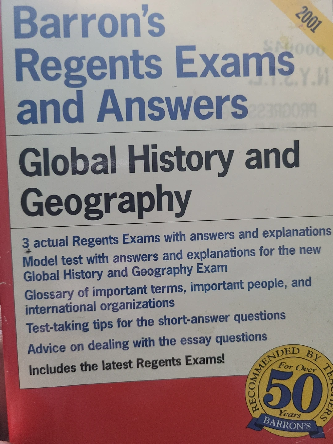 161Selling Barron's Regents Exams and Answers book for Global History and Geography Features: - 3 actual Regents Exams with answers and explanations - Model test with answers and explanations for the new Global History and Geography Exam - Glossary of important terms, important people, and international organizations - Test-taking tips for the short-answer questions - Advice on dealing with the essay questions - Includes the latest Regents Exams!