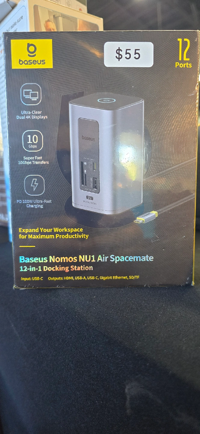 Selling a Baseus Nomos NU1 Air Spacemate 12-in-1 Docking Station! It features ultra-clear dual 4K displays and supports 10 Gbps super fast 10Gbps transfers. It also has PD 100W ultra-fast charging. Expand your workspace for maximum productivity with this docking station! The box is included