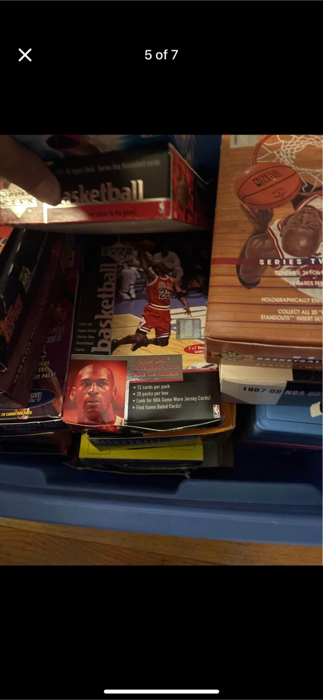 76Selling a lot of basketball trading cards, including Upper Deck and Topps. Great for collectors! 1990 hobby boxes boxes are all open with the packs and cards still in there don’t know what is in there found in unit today 11/31/25