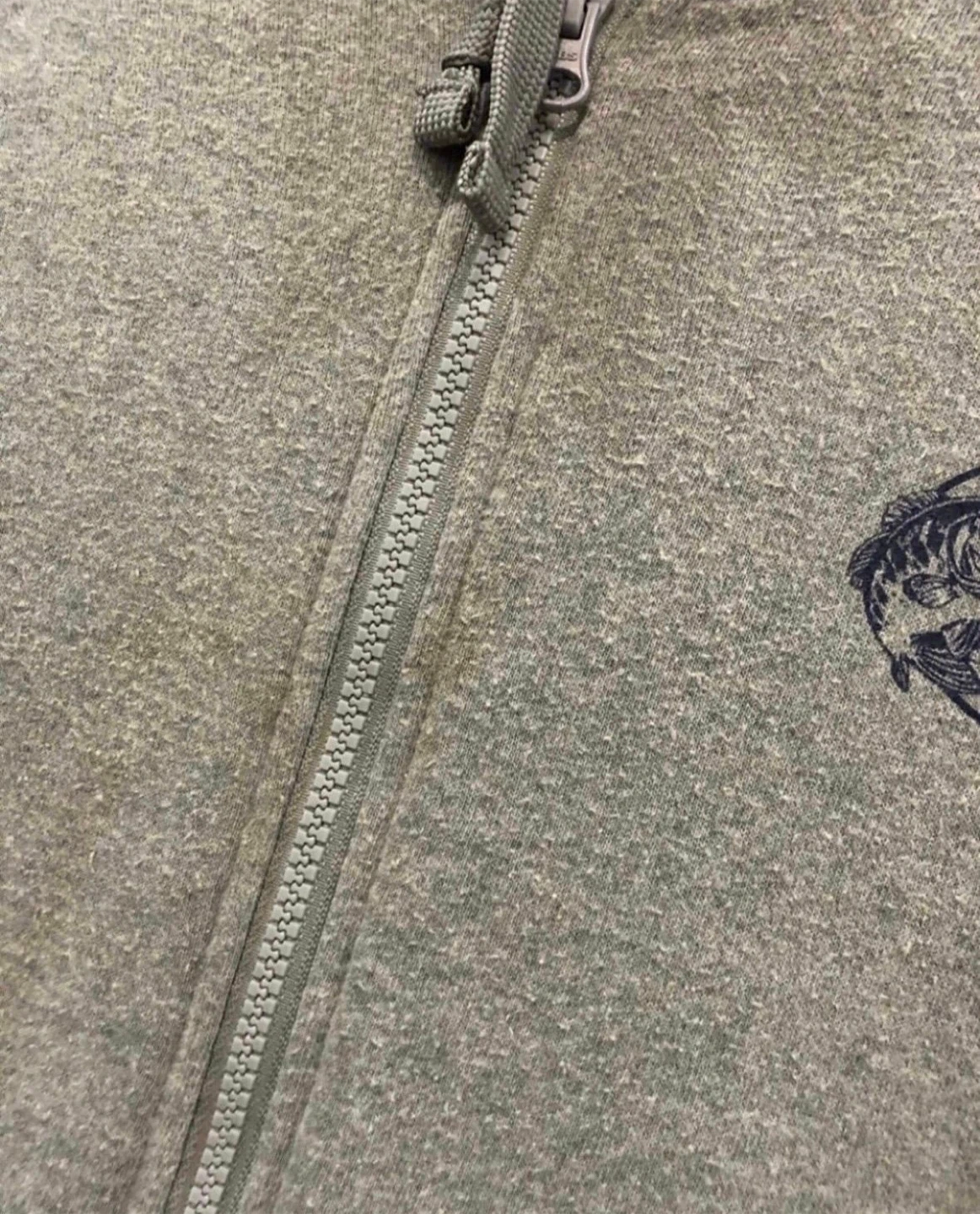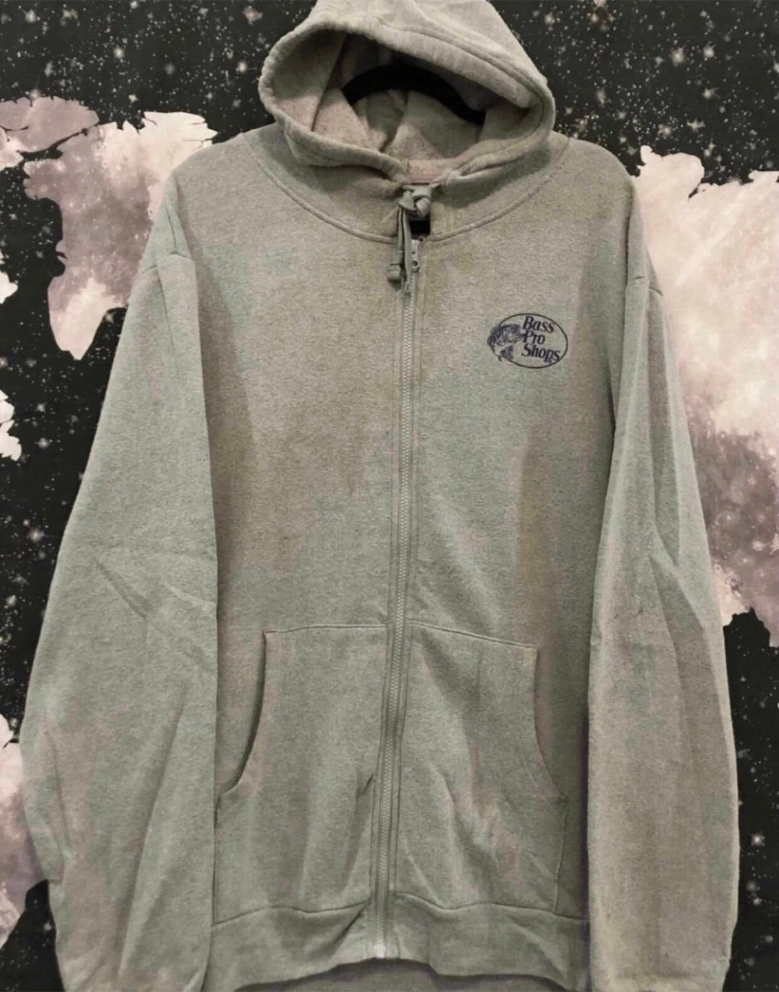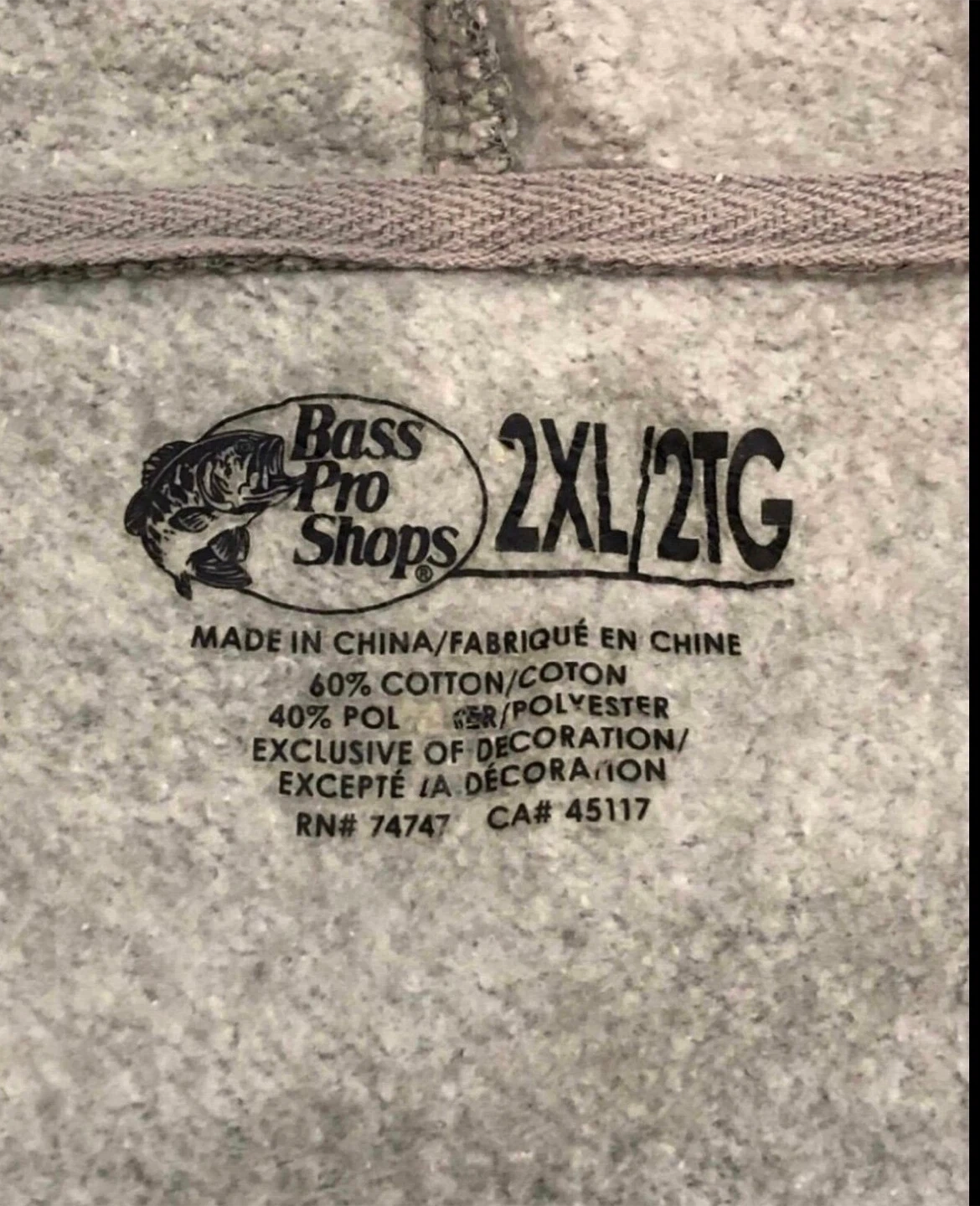 Bass Pro Shops Athletic Fishing Sports style zip up hoodie, color is gray with front logo. Preowned condition *discoloration marks front center, cuff & elbow, pilling* Sz. XXL Measurements (28”x31”)