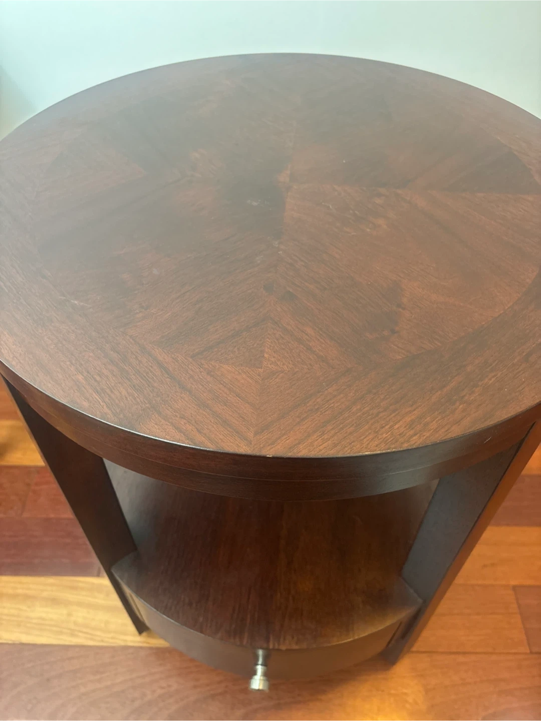 Bassett Dark Wood Round End Table Reduced for Quick Sale