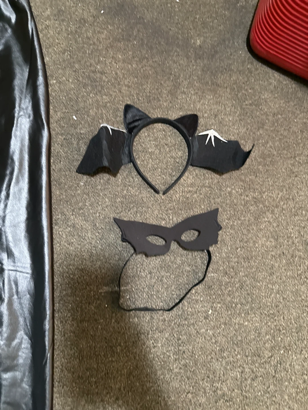 Selling a Batgirl costume! It includes the cap , mask, and headband. Perfect for Halloween or dress-up!