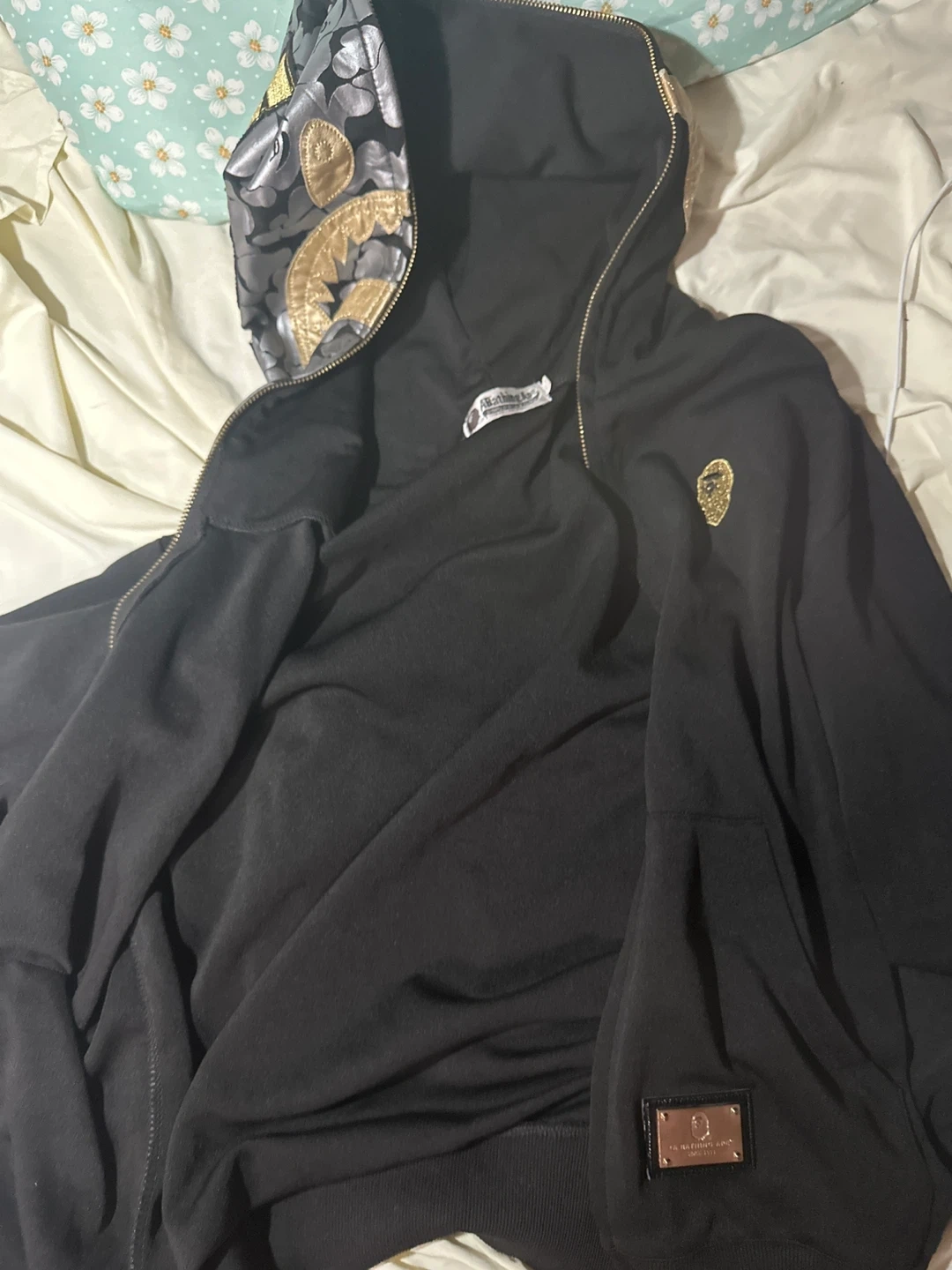 83Selling a Bathing Ape (BAPE) black shark hoodie! It features a shark design on the hood and the BAPE logo on the sleeve. Great for streetwear enthusiasts! Not sure if it authentic or not but you can still buy from me. No trade only buy from me and accept cash or Zelle