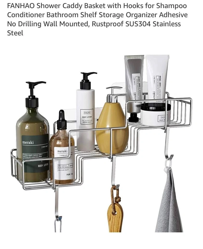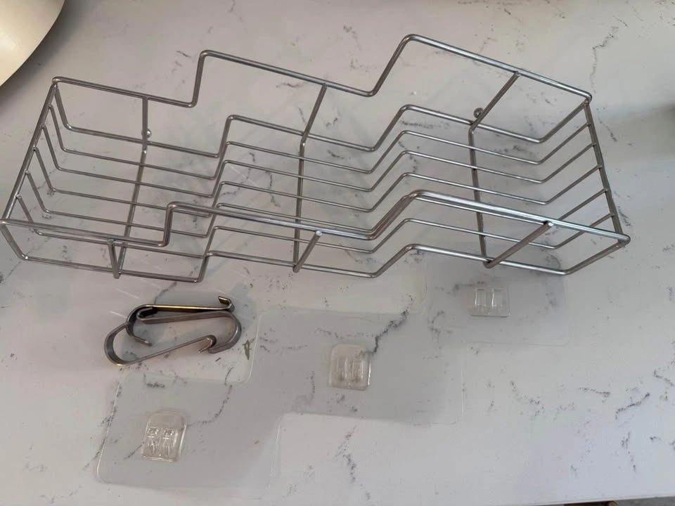 Wall mount adhesive, 3 hooks for hanging. 4.72"D x 14.76"W x 6.7"H