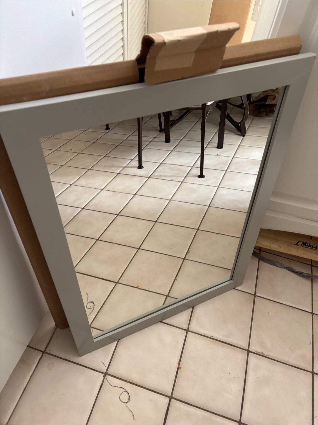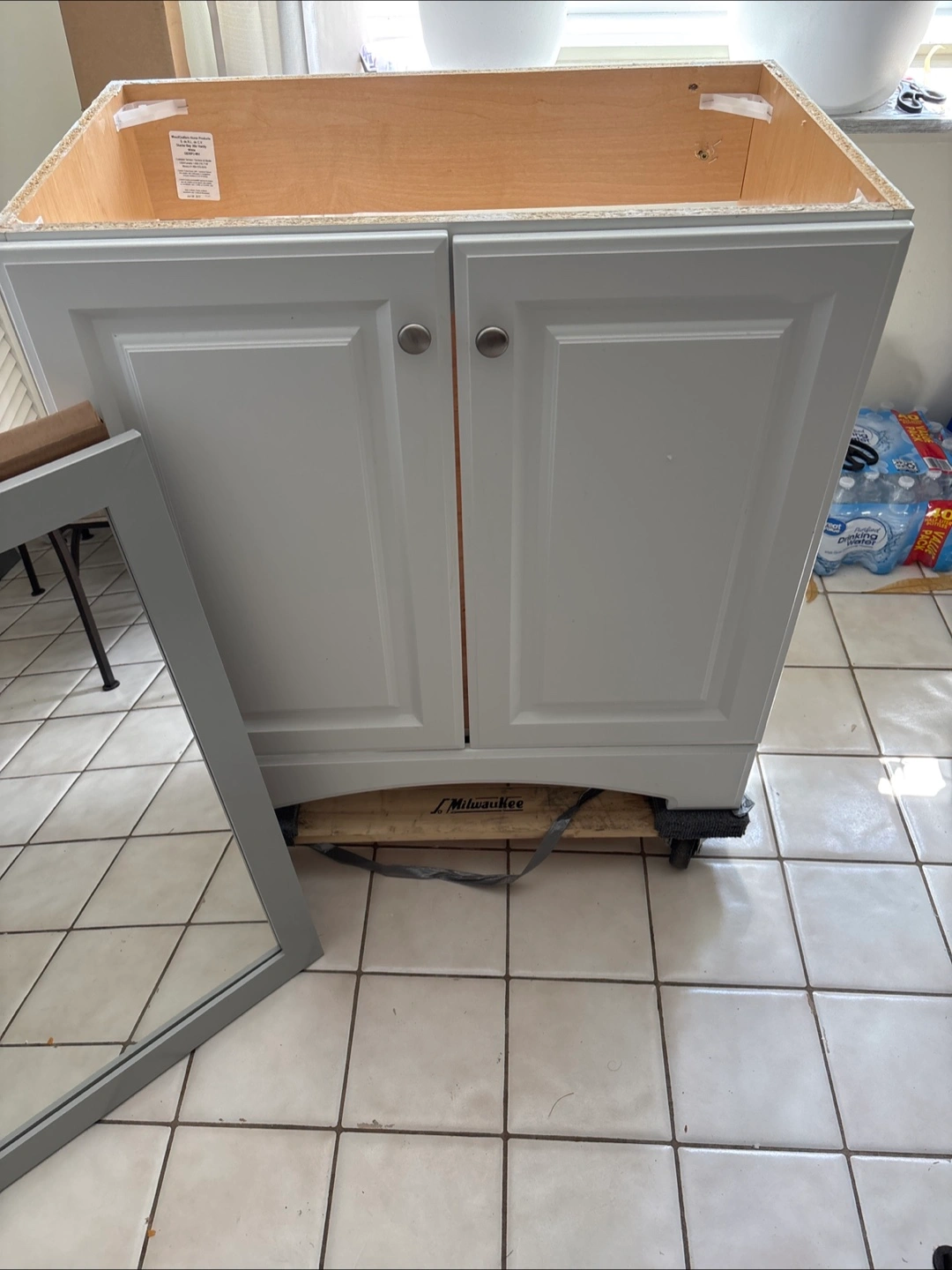 Selling a bathroom vanity cabinet along with a matching mirror. The cabinet is white and appears to be in good condition. Perfect for a bathroom remodel or upgrade! W30 inches 18 inches wide 32 inches long