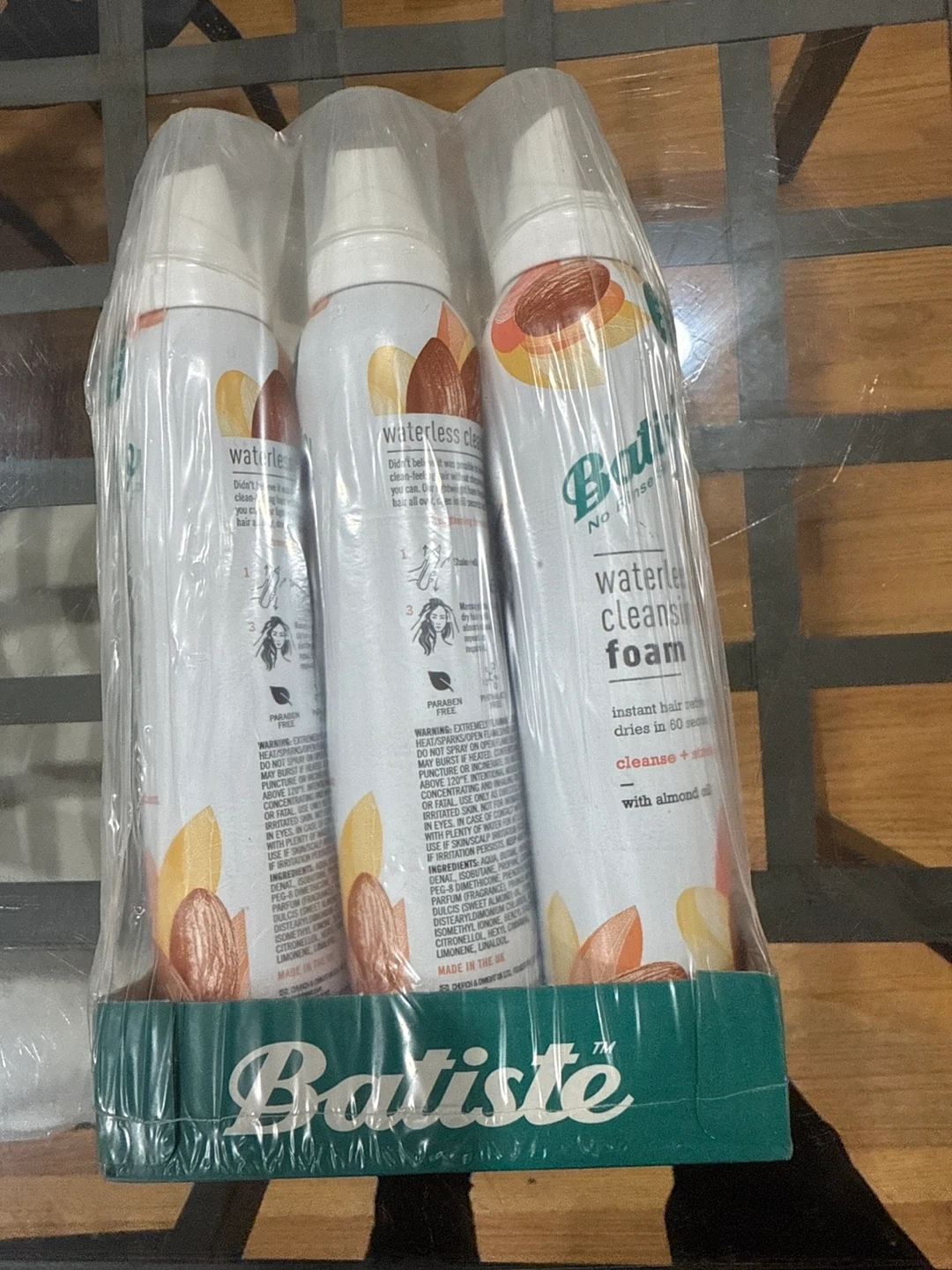 70Selling a 6-pack of Batiste Waterless Cleansing Foam! It's an instant hair refresher that dries in 60 seconds. This foam cleanses and nourishes hair with almond oil. Great for normal hair!