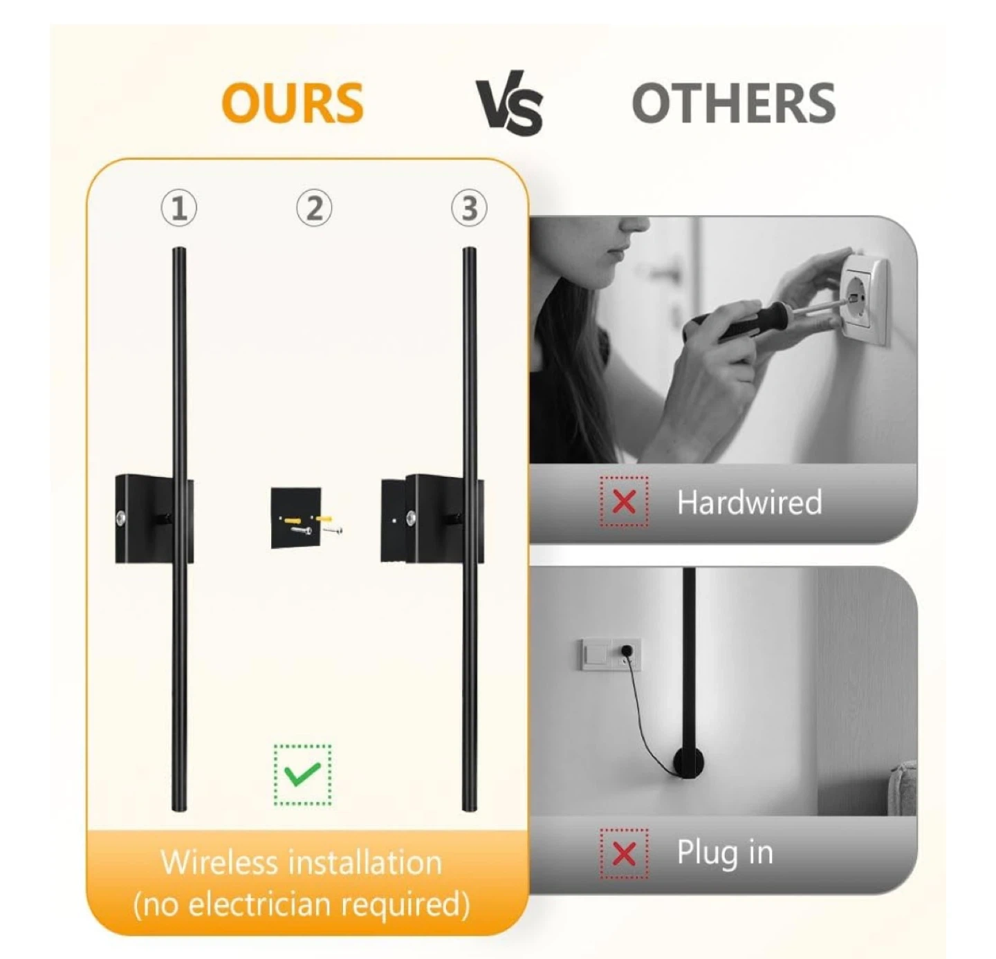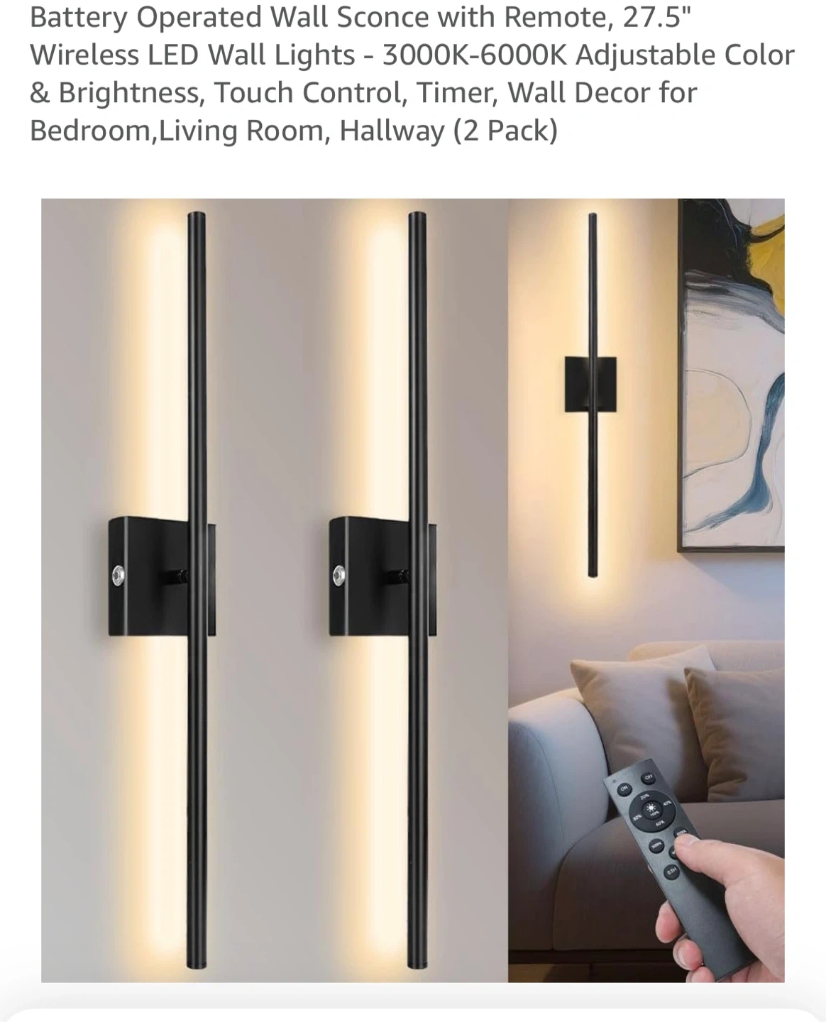 Battery Operated Wall Sconce with Remote, 27.5" Wireless LED Wall Lights - 3000K-6000K Adjustable Color & Brightness, Touch Control, Timer, Wall Decor for Bedroom,Living Room, Hallway (2 Pack)
