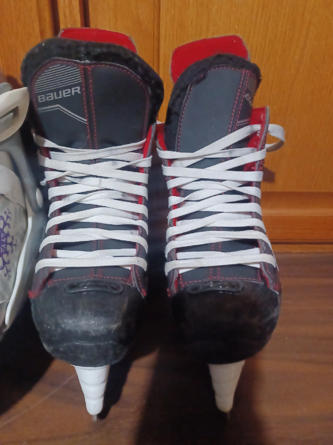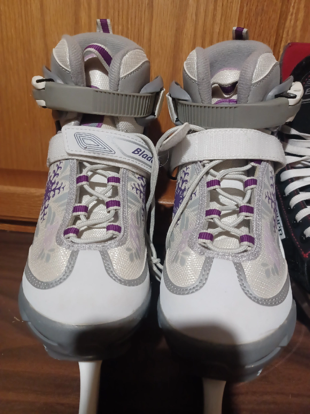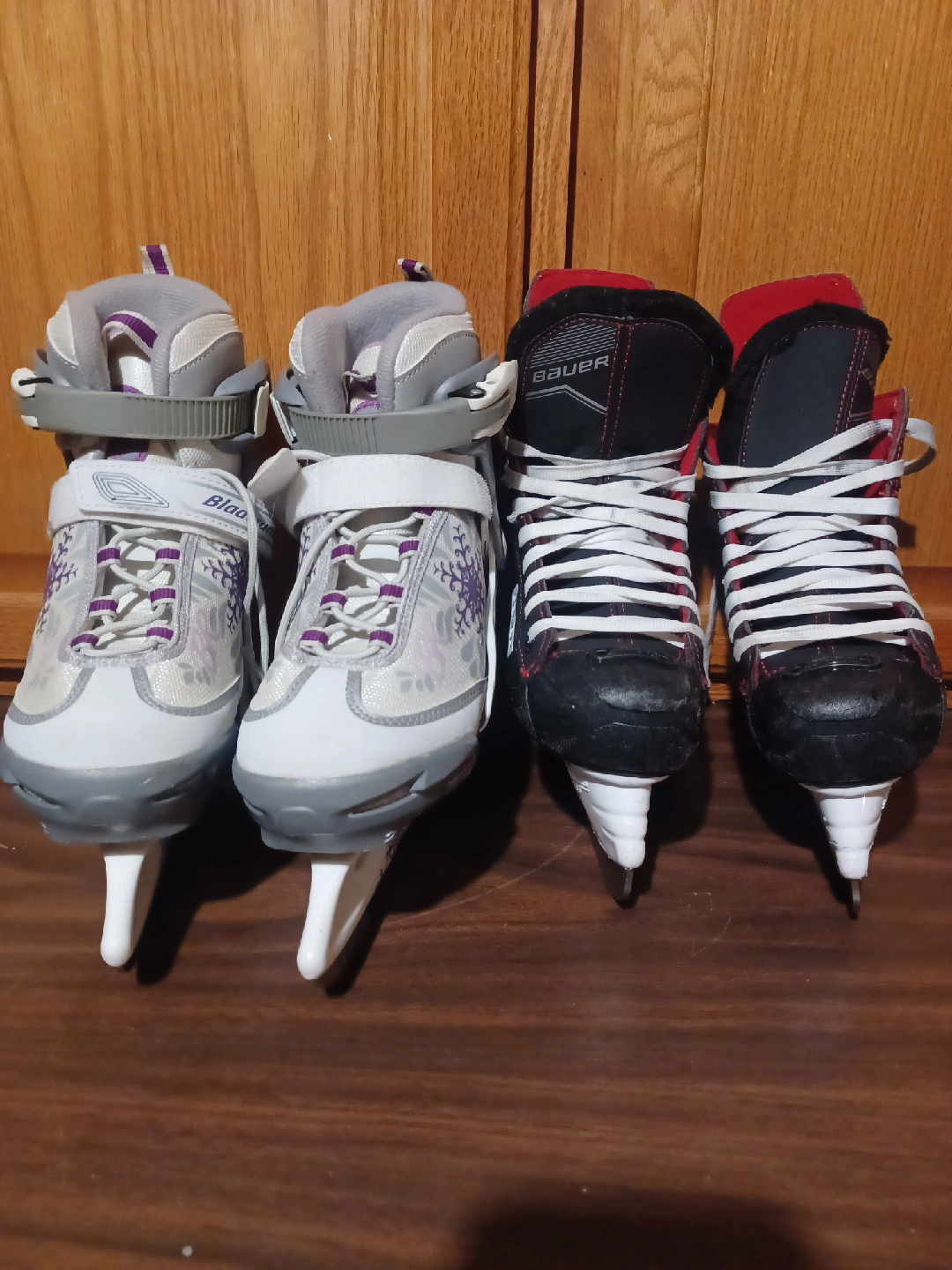 Selling a pair of Bauer ice skates and Blade inline skates. Both show signs of wear but are still functional The white one is size 6 and the black one is size 5 each pair for $10