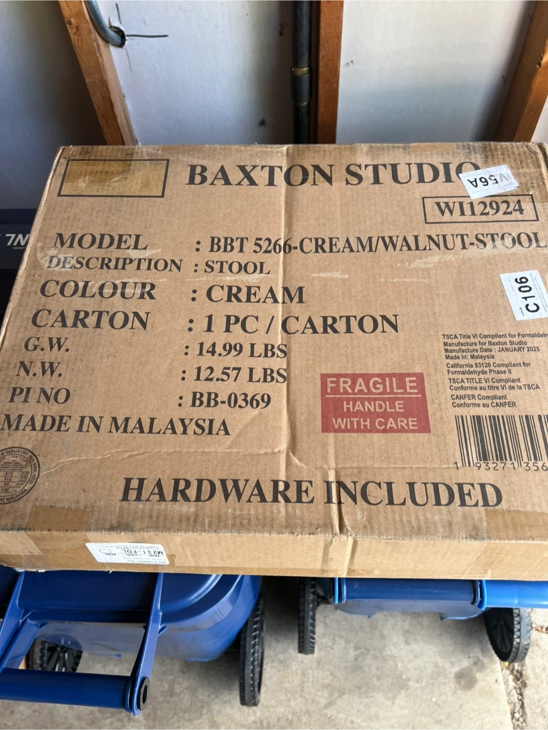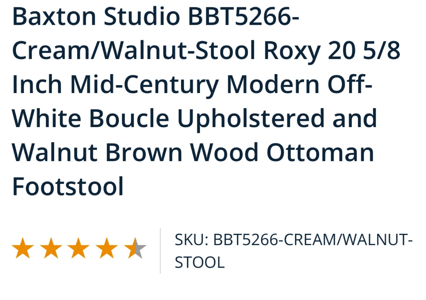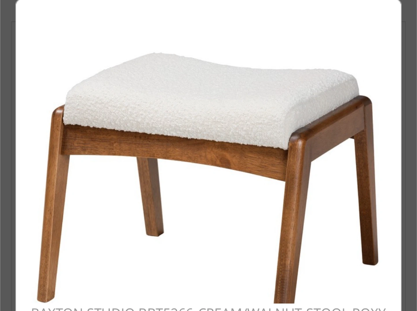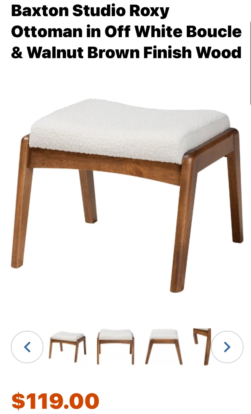 Selling a Baxton Studio Roxy Ottoman in off-white boucle and walnut brown finish wood. It's a stylish and comfortable addition to any living space! - Dimensions: 17.10" H x 21.70" W x 20.70" D