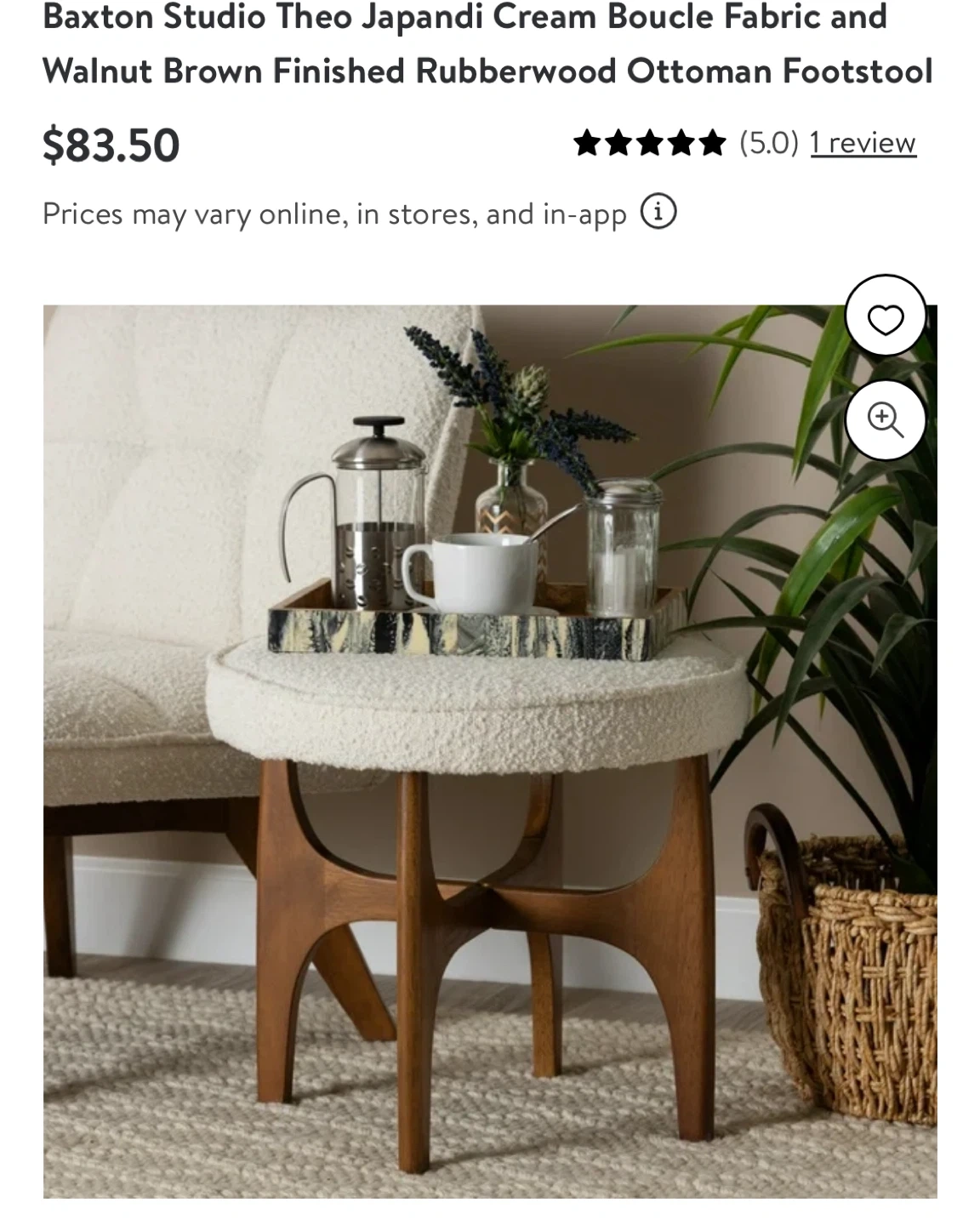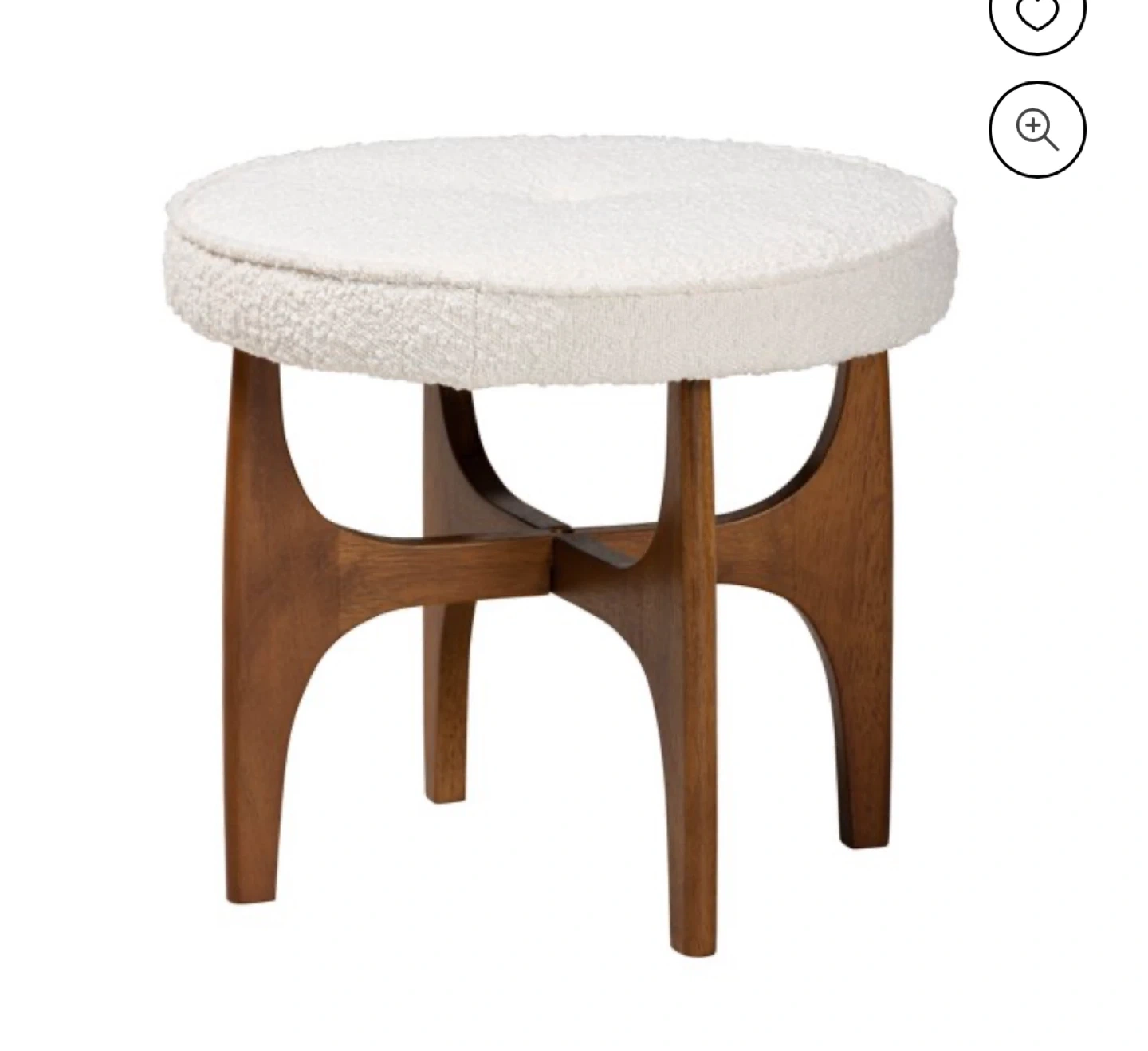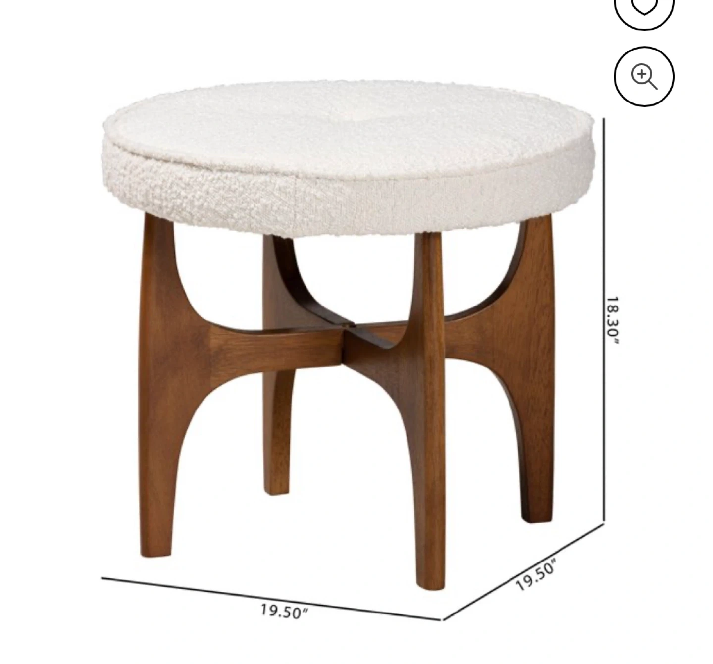 Selling a Baxton Studio Theo Japandi cream boucle fabric and walnut brown finished rubberwood ottoman footstool. It's in great condition and would be a lovely addition to any room. The dimensions are approximately 18.3" high and 19.5" wide.