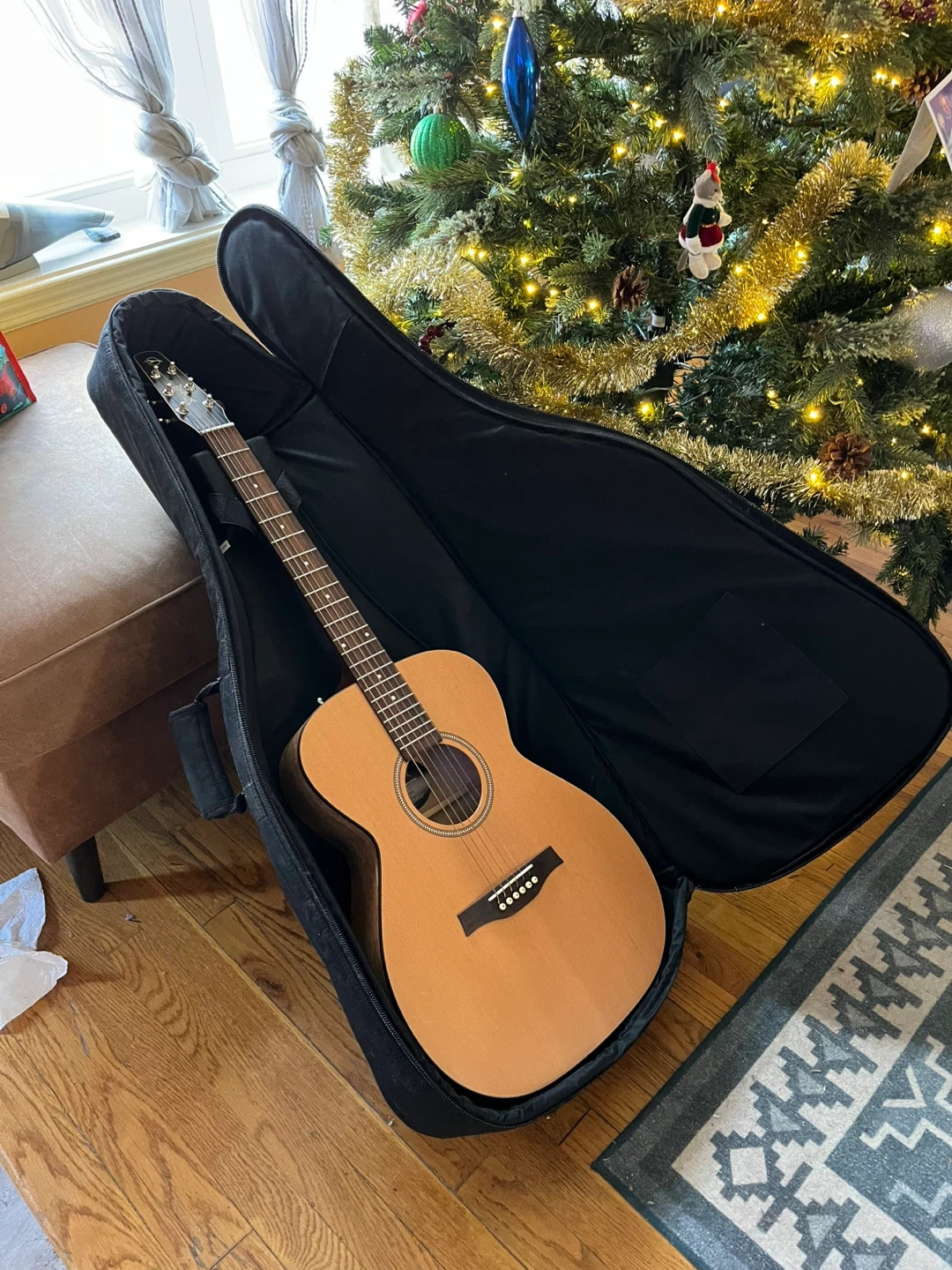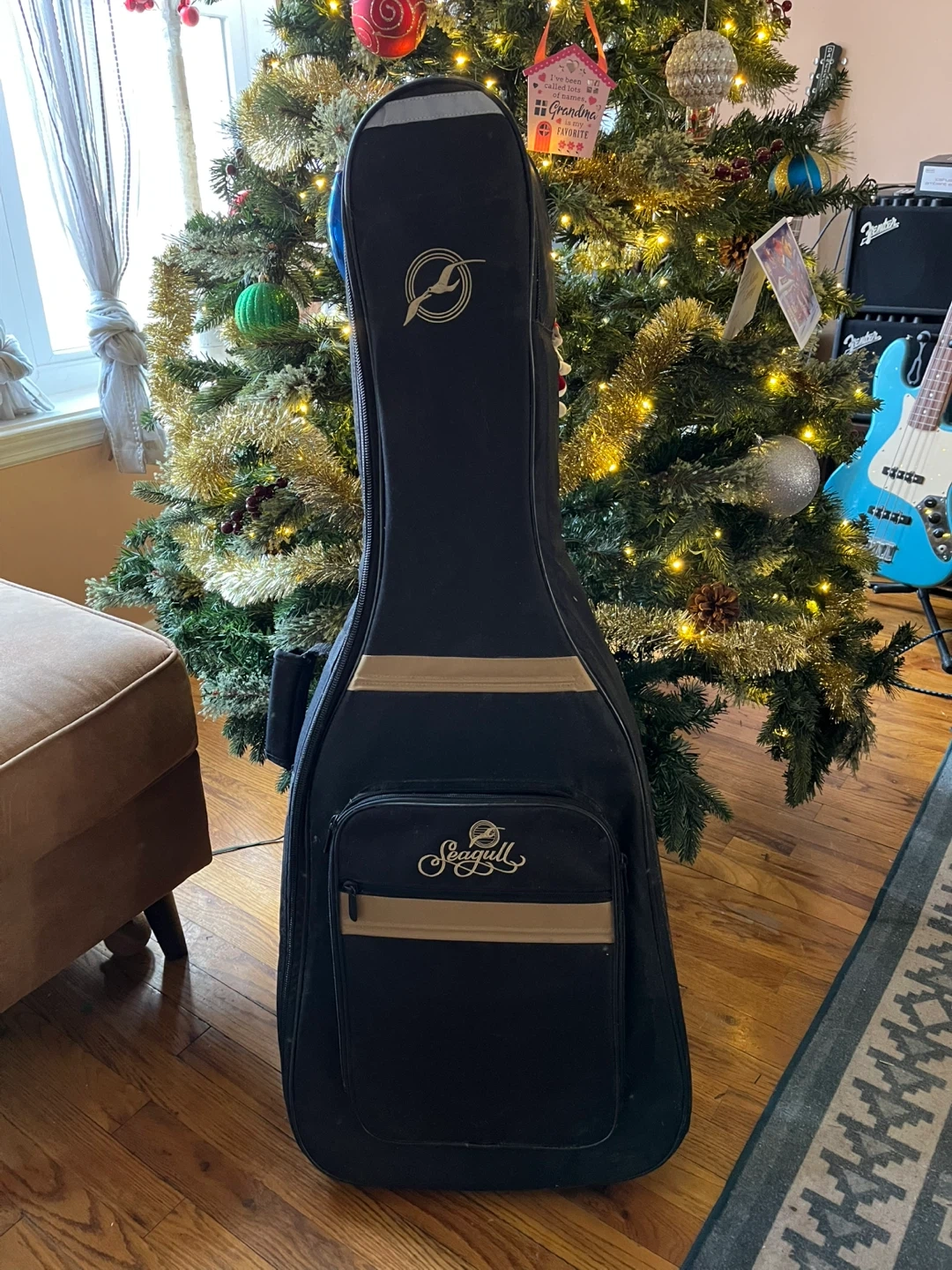 The last guitar I bought for my mom—she played it perhaps six times maximum, before putting it back in the case and under the bed. This Seagull acoustic guitar is in brand-new condition! It comes with its original case, so it's easy to carry around and keep protected. Perfect for anyone looking to pick up a new hobby, upgrade their current instrument, or give the gift of music.
