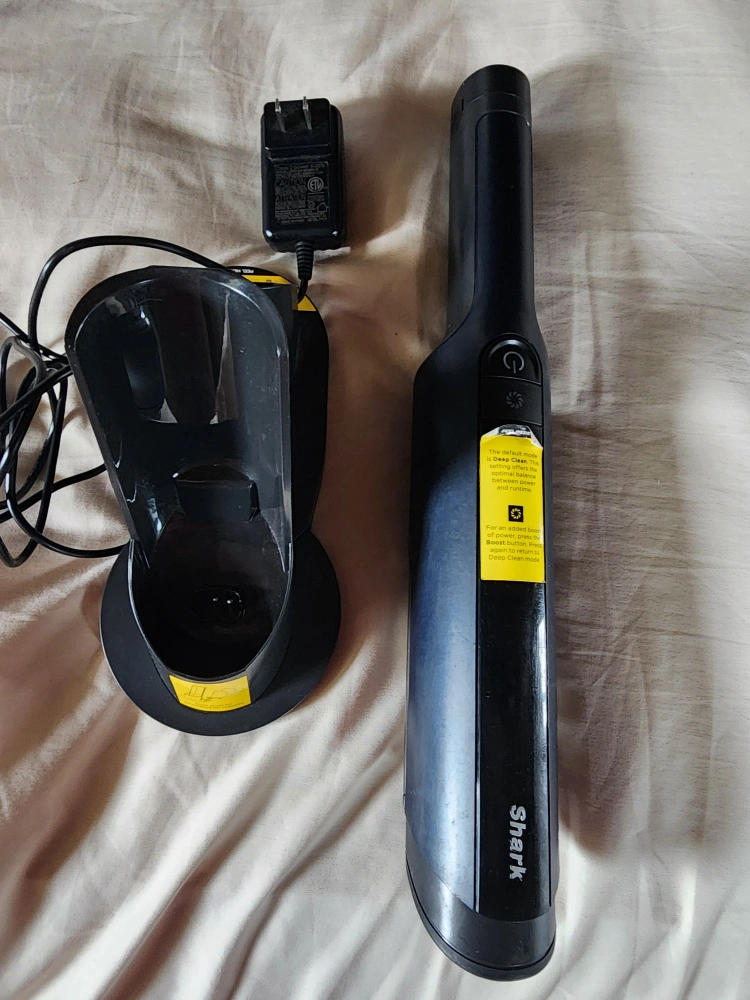 Selling a Shark Wandvac cordless handheld vacuum! It comes with the charging dock and power adapter. It's perfect for quick cleanups around the house or in the car. The default mode is for light cleaning, and there's also a boost button for added power in deep clean mode. It's lightweight and easy to use!