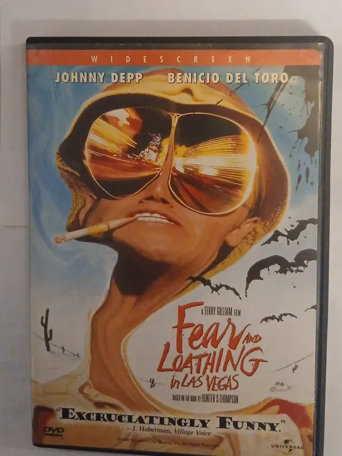 This is the widescreen DVD for the film Fear and Loathing in Las Vegas. It stars Johnny Depp and Benicio Del Toro. This movie is based on the book by Hunter S. Thompson.